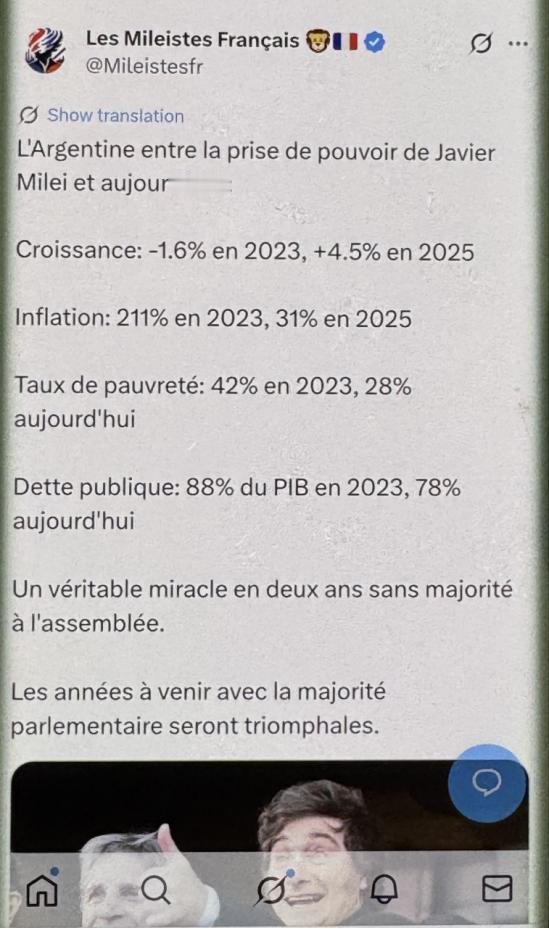 阿根廷大逆袭!米莱执政两年,通胀从211%暴跌至31%,经济增速扭负为正! 谁也没想到,两年前濒临破产的阿根廷,如今能交出一份惊艳拉美的经济答卷。2025年末,阿根廷官方公布的核心经济数据显示,通胀率已从2023年米莱上任时的211%暴跌至31%,经济增速更是从2024年的-1.8%成功扭负为正,2025年预计增长5.5%,直接领跑整个拉美地区。这组数据背后,是这个南美国家从崩溃边缘到逐步企稳的艰难转身,也让当初不看好米莱的声音渐渐平息。 2023年12月米莱上任时,阿根廷的经济早已是千疮百孔的烂摊子。当时过去12个月的累计通胀率飙到211%,货架上的商品价格几天就变一次,普通民众攥着比索根本不敢消费,不少家庭连基本的生活物资都要精打细算。 贫困率不仅突破40%,后续甚至一度攀升至52%,超过一半的人口面临生存压力。更棘手的是债务问题,欠国际货币基金组织的债务超440亿美元,外汇储备更是低到-73.26亿美元,相当于连外债的窟窿都填不上,国际市场上几乎没人愿意再给阿根廷放贷。 外界不看好米莱是有道理的。这位当过足球守门员、乐队主唱的总统,在上任前更像是政坛“非主流”,他主张的激进“休克疗法”听起来就充满风险。 当时他所在的“自由前进运动”党成立仅两年多,在国会所占席位不足15%,连一个省的省长选举都没赢过,要推动大刀阔斧的改革,看起来难如登天。 更有人直言,这种完全偏向市场化的激进改革,只会让本就脆弱的民生雪上加霜,根本救不了阿根廷。没人预料到,两年后的今天,这些质疑都被实打实的数据打破了。 米莱上台后,很快拿出了早已酝酿好的改革方案。他用“电锯”式的力度精简政府机构,把原来的18个内阁部门砍到只剩8个,裁撤了教育部、劳工部等多个部门,还解雇了3.4万名公职人员,短期内不再招聘新员工。 同时大幅削减社会福利开支,取消了能源、电力和交通领域的民众补贴,暂停了公共工程合同和对省级政府的转移支付。这些措施在初期引发了不少争议,公共部门的精简让医疗、教育体系一度濒临崩溃,专业人员薪资下滑,退休金标准甚至低于贫困线,86%的民众都表示入不敷出。 但米莱的改革并没有就此停步,他紧接着推出了一系列市场化措施。在经济管制上,一年内发布了672项监管改革措施,涉及住房、制药、能源、农业等多个领域,其中一半以上是直接取消原有管制。 他还推动国有企业私有化,虽然最终进入私有化进程的6家远少于最初计划的41家,但也为市场注入了活力。 更关键的是金融领域的调整,上任初期就将比索兑美元汇率贬值54%,之后每月以2%的速度稳步贬值,把官方与非官方汇率的差距缩小到10%以下,同时停止为财政赤字提供货币融资,让广义货币供应量保持稳定,央行利率也从133%大幅下调到32%,大大减轻了债务支付负担。 国际市场的借力也成为阿根廷经济复苏的关键推手。面对美国的压力,米莱政府巧妙平衡外交关系,既巩固了与美国和华尔街的联系,获得了关键的金援背书,又没有放弃中国这个重要贸易伙伴。 2025年,阿根廷抢先与中国续签350亿元人民币互换协议,绕开美元结算直接节省3.2亿美元汇兑成本,还让比索汇率止跌企稳,外汇储备压力减轻了20-25%。 借助中美关税战的契机,阿根廷加大对华农产品出口,2025年上半年对华农产品出口就达9亿美元,下半年计划再增25%,大豆、牛肉等核心农产品的出口占比不断提升,出口额创下历史新高。 同时,凭借全球第三大锂储量的优势,吸引中国企业22亿美元投资,43%的锂出口流向中国,成为新能源赛道的关键玩家。 这些举措的成效逐渐显现,除了通胀和经济增速的亮眼数据,阿根廷的贫困率已从52%回落至31%,就业率较去年同期增长了5.2%,采矿业和金融业的投资持续增加。 美国传统基金会发布的2025年经济自由度指数报告显示,阿根廷的排名上升了21位,全球排名第124位。 不过阿根廷的复苏之路并非毫无波澜,中期选举前曝光的贪腐丑闻让米莱的支持率一度降至39%的历史低点,他的妹妹、总统府秘书长卡琳娜被指收受医疗企业50万至80万美元贿赂,力推的候选人也因受贿丑闻退选。 同时,改革带来的两极分化问题日益凸显,约1.5万家中小企业倒闭引发裁员潮,新兴中产阶级承受着改革代价,而政治阶层的薪资却不断上涨,引发民众广泛诟病。这些问题都在考验着米莱政府的治理能力,也为阿根廷经济的持续复苏埋下了不确定因素。 从濒临崩溃到领跑拉美,米莱用两年时间完成了一场让人意外的经济逆袭。但这场逆袭背后,是民生的阵痛与社会的撕裂。 现在的阿根廷,经济数据虽然亮眼,但如何平衡改革与民生,解决两极分化和腐败问题,让经济复苏的成果真正惠及普通民众,仍是亟待解决的难题。