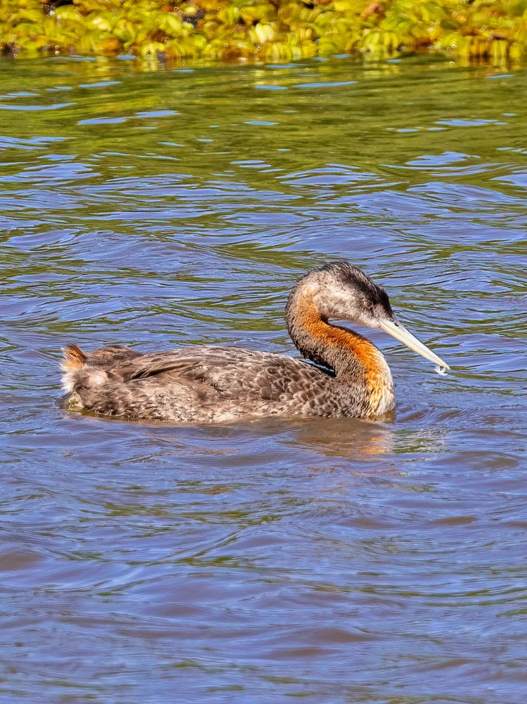 原创拍摄 大䴙䴘,䴙䴘目䴙䴘科䴙䴘属。 不是小䴙䴘的长大后,也不是我们常见的凤头䴙䴘,而是另一种体型大的䴙䴘,事实上,大䴙䴘是世界上最大的䴙䴘科物种,甚至是最大的潜水鸟类,哈哈。体重最大可达2kg,颈子和嘴也更加的长。 拍摄于阿根廷布宜