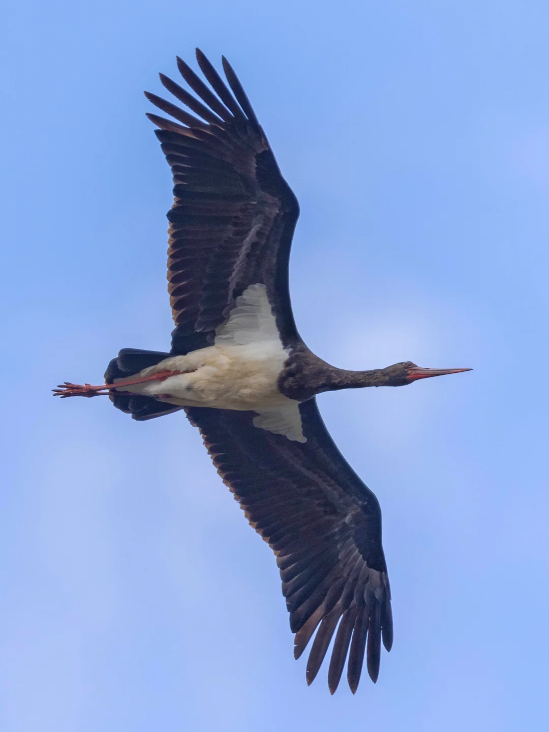 原创拍摄于2025.02 黑鹳,Black Stock,鹳形目鹳科鹳属。国家一级保护动物。 黑怪的体型比较大,飞起来更是壮观,他们平均身长有95至100厘米,翼展更是可以达到144至155厘米。飞行时会有比较长时间的翱翔,体态也非常的优美。 这次在香格里拉看到的一群黑鹳越冬种群,国家一级保护动物,超级过瘾啊,盘旋飞过我车顶也是震撼。