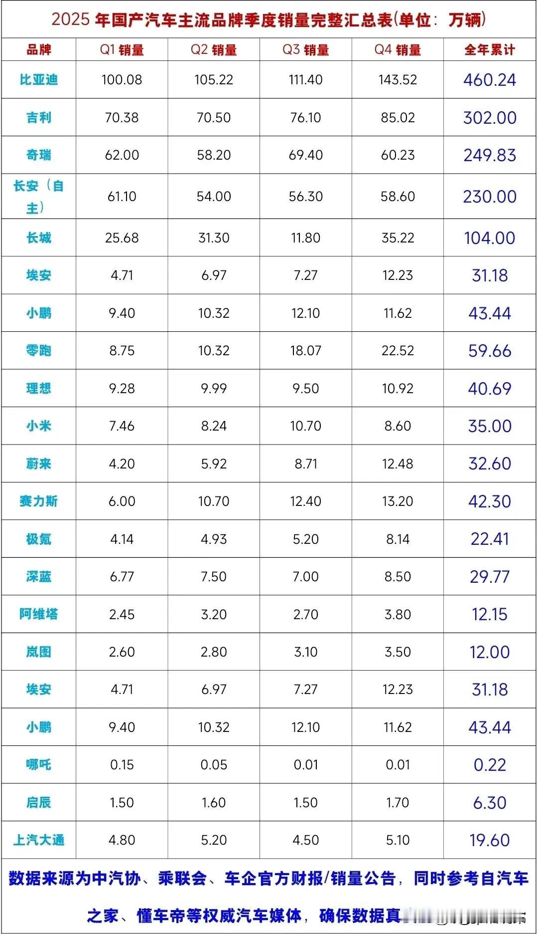 赤裸裸的现实来了,加满50升油箱: 美 国:约需370元人民币! 日 本:约需440元人民币! 英 国:约需630元人民币! 法 国:约需676元人民币! 俄 罗斯:约需240元人民币! 沙 特:约需226元人民币! 伊 朗:约需12元人民币! 中 国:约需360元人民币币! 吉利302万紧追,奇瑞280万逆袭!2025国产车企格局生变 三大巨头的竞争将更趋激烈,比亚迪的车型升级、吉利的增速维持、奇瑞的海外扩张,都将影响市场格局。随着新能源渗透率持续提升,智能化与出口成为核心竞争点,头部车企将通过技术下沉、产品优化巩固优势,而行业“淘汰赛”也将进一步加剧,中小品牌的生存空间将被进一步挤压。 2026年三巨头重点车型对决清单 品牌 2026年重点车型 核心卖点 目标市场 比亚迪 秦L改款、宋Pro焕新 云辇系统下放、续航优化、内饰升级 国内家用新能源主力市场,东南亚出口市场 吉利 银河L7换代、极氪001改款 混动系统效率提升、智能座舱升级 国内中高端新能源市场,欧洲小众市场 奇瑞 瑞虎8 PRO改款、风云T9出海版 适应海外路况调校、大空间低油耗 南美、中东等主力出口市场,国内家用SUV市场 文末互动投票 1. 你觉得2026年谁能拿下国产车企销量冠军? A 比亚迪 B 吉利 C 奇瑞 2. 三大巨头中,你更看好谁的海外市场发展? A 比亚迪 B 吉利 C 奇瑞 3. 你认为哪类车型会成为2026年国产爆款? A 家用混动SUV B 智能纯电轿车 C 高性价比紧凑型车 国产三巨头的2025销量成绩单,既展现了中国汽车产业的强势崛起,也预示着2026年更趋残酷的市场竞争。各自凭借差异化优势占据赛道,未来能否持续领跑,关键在于能否精准把握用户需求与行业趋势。