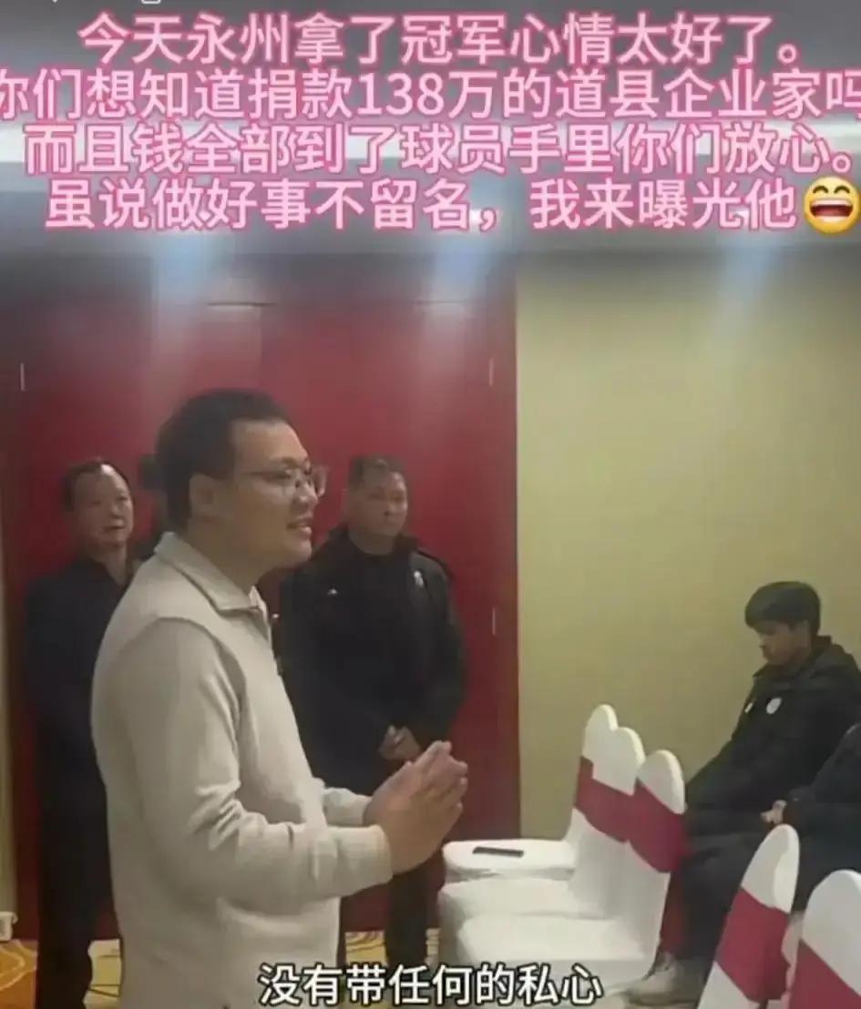 138万,连个名字都不留 永州队刚捧回湘超首冠,银行卡里就多了这笔钱。汇款人