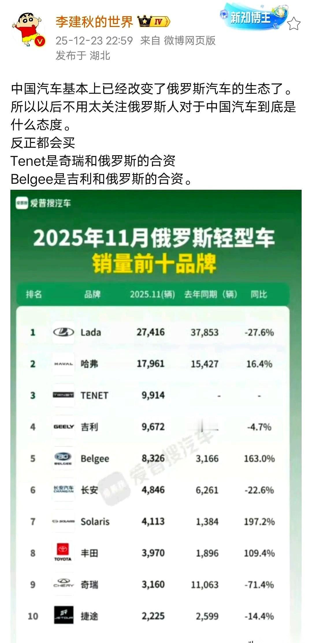 欧美车企估计肠子都悔青了。 前脚刚走,想着能把人给拿捏住,结果呢? 人家俄罗斯市场的大门,我们不仅进去了,还打算把锁都给换了。 你以为我们只是在卖车? 格局小了。 现在玩的是什么?是合资,是跟你的人一起建厂,一起搞个新牌子。 以后马路上跑的,是“中俄混血车”。 这招真的太绝了。 这一下,你中有我,我中有你,我们成了“自己人”。 你再想用什么政策来卡我?你卡的是你自己的工厂,你自己的工人。 你看懂这个玩法没? 以后从中国整车运过去的车,就越来越少,越来越贵。 那边关税一加,正好,顺理成章地就成了“高端货”,专门卖给有钱人。 那普通老百姓开啥? 开咱们合资厂造的本地车呗,便宜、实惠,管够。 高低两头,全给占了。 这市场,已经不是他们想回就能回得来的了。 这盘棋,下得真大。
