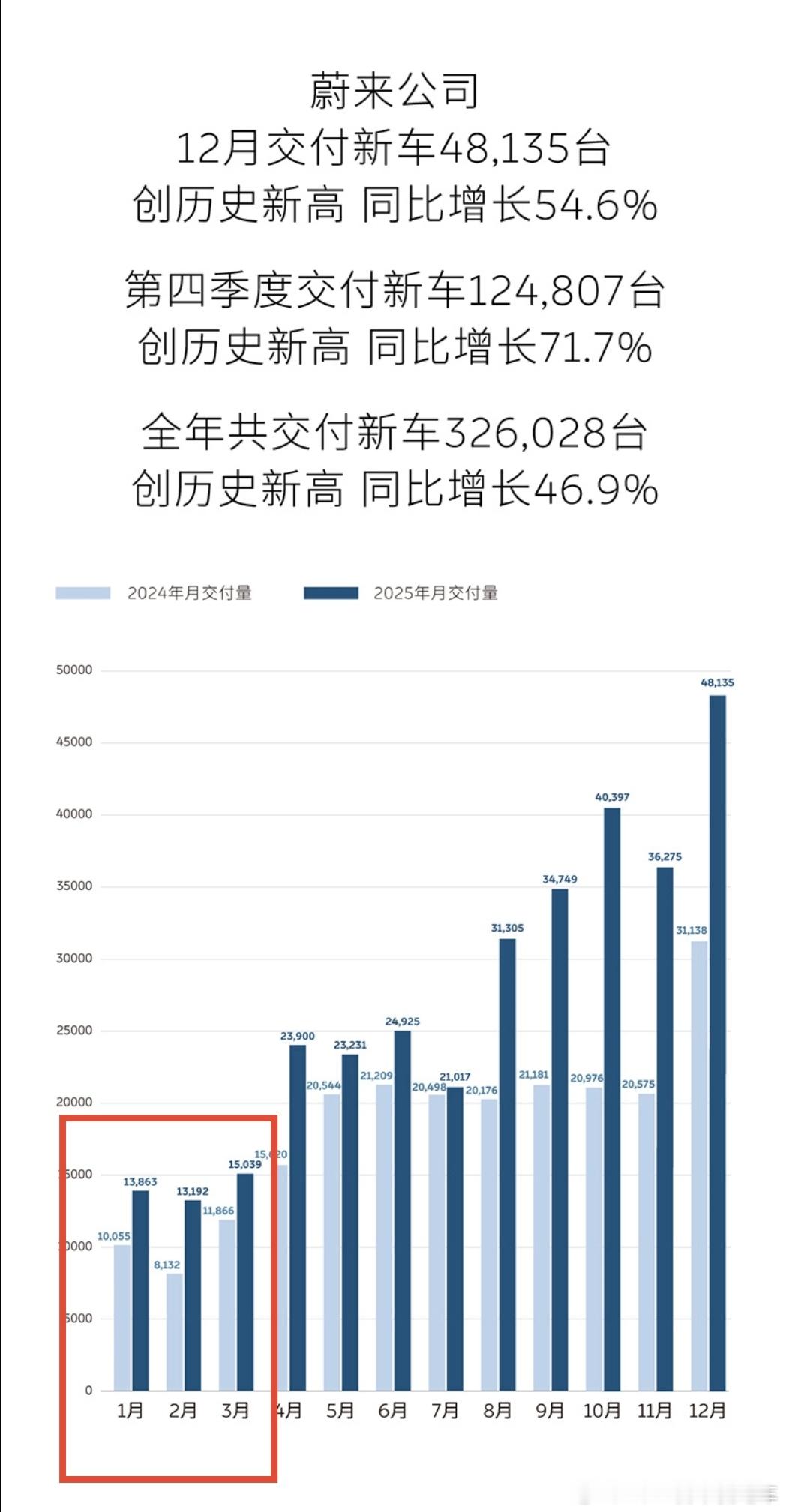 2026年1月,蔚来发布了12月份的交付数据,整个集团交付48135台,创历史新高,同比增加54.6%,Q4一共交付124807,同比增加71.7%,而均价40多万ES8甚至夸张的交付了22156台,这绝对是蔚来历史上非常有意义的大事件,我想今天所有蔚来的车主和粉丝都非常的开心。图2是今年1月份我的手机截图,这是当然整体行业进入淡季后,所有企业都交付大幅下降,但是友商唯独疯狂要带蔚来的节奏,当然我为了还击做了很多对比图,这些都是历史,在当时甚至传言比亚迪收购蔚来,小米收购蔚来各种传言满天飞,乐道也遭受了巨大的网络攻击,一时间各种O0爆了的抽象画甚嚣尘上,说实话今年Q1真的难顶,当时财报会上,李斌提出今年Q4要盈利,我估计没多少信。回忆这么多,我不是为了翻旧账,我只是告诉大家,至暗时刻的蔚来我选择相信,而经历过的至暗时刻的蔚来会更加强大,现在我会更加坚信,蔚来一定有未来,而且会是新势力中最有未来的企业。蔚来汽车