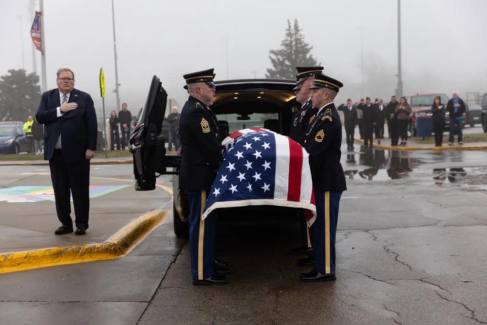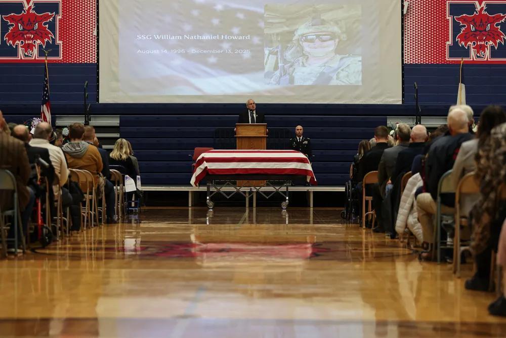 2025年12月27日,美国爱荷华州,一位在叙利亚执行任务死亡的美军士兵的葬礼,盛大隆重,同时也是一场形象化的美国式“爱国主义”。