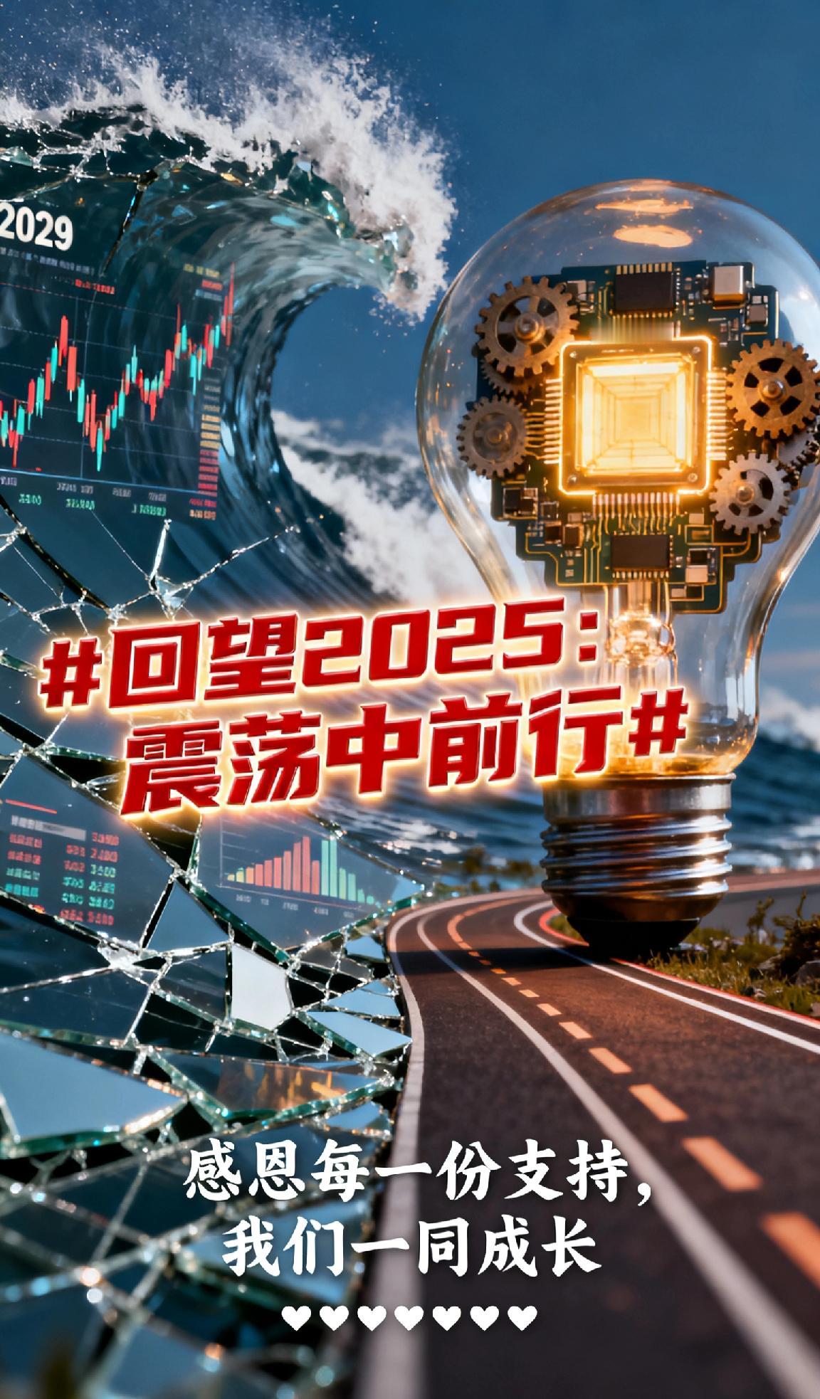 回望2025:震荡中前行2025是风浪与微光交织的一年:市场波动、行业调整带来不少挑战,却也藏着破局的力量。技术迭代加速、创新赛道崛起,无数人在不确定性中坚守初心、稳步前行。感恩粉丝和友友们一路相伴,每一次支持都是前行的底气。回望是为了更好出发,愿2026我们继续并肩,在变局中寻新机,向光而行~2025回望总结 震荡中向阳而行 感恩粉丝一路伴 2026并肩向光 友友们的温暖 向光而行新征程