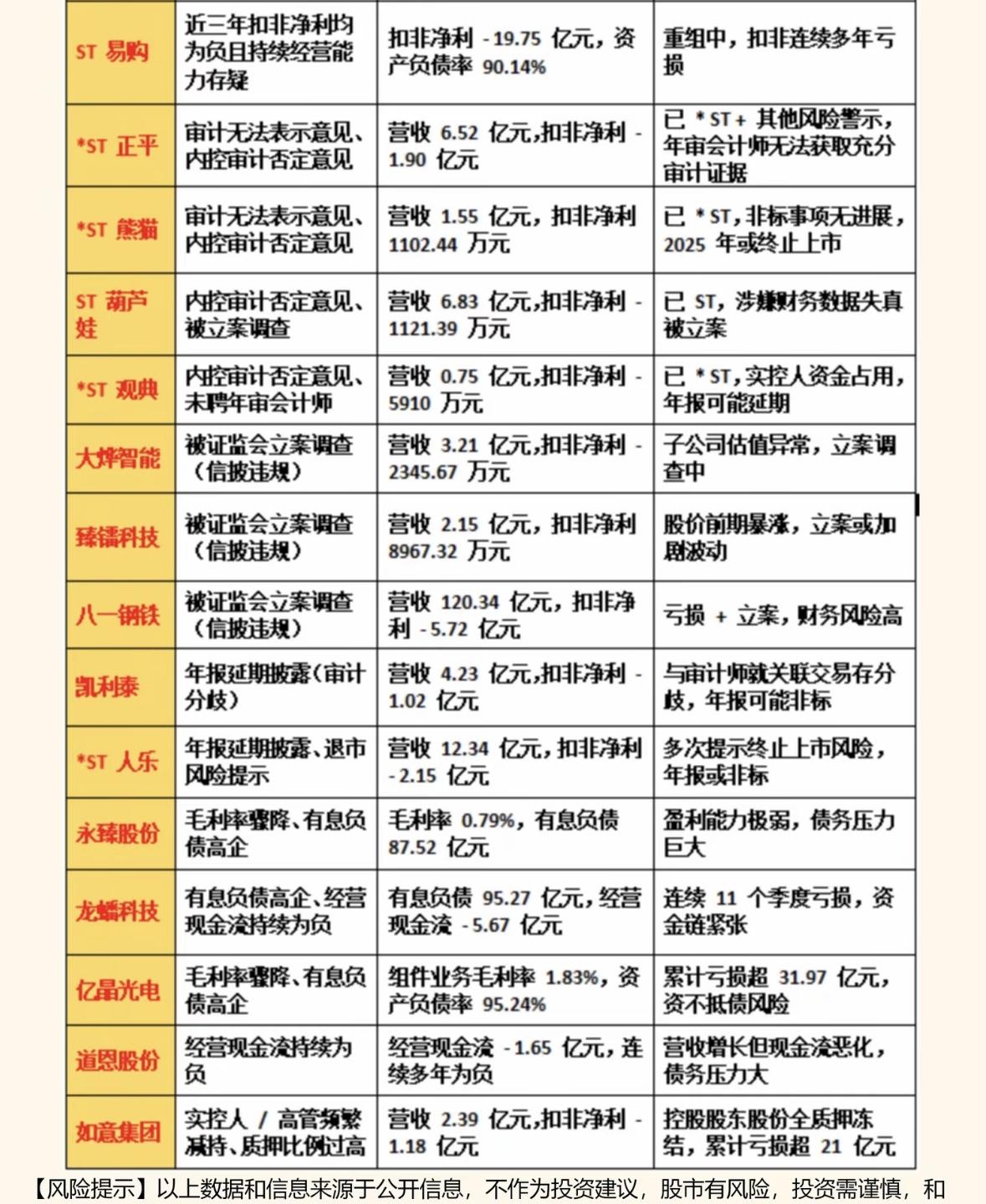 "警惕2026年报风险股! 亚太药业、亚振家居等多家公司面临退市危机,扣非净利持续为负,部分已*ST。 华夏幸福负债千亿,华阳新材连亏16年。 投资需谨慎,避雷为上。"