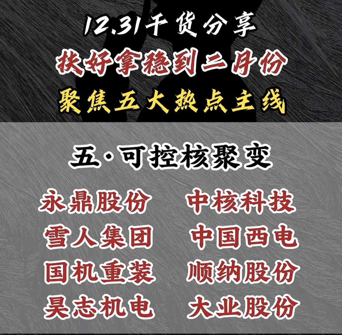 12.31干货分享:五大热点主线,助你稳赢一月! 一月份聚焦人形机器人主线, 关注相关潜力股如三花智控、 万向钱潮等,把握投资机会。