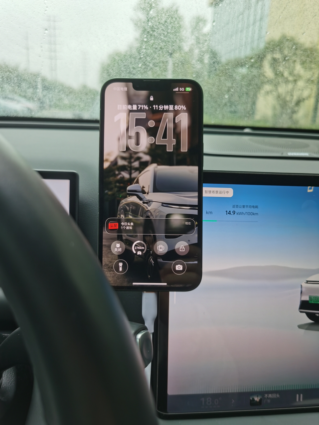 智能化这么强干嘛还整个手机支架 每次当我晒出我在小鹏G9内饰中唯一加装的磁吸手机支架时,总会有车友问“智能化这么强,还有无线充电,干嘛还装这玩意?” 其实,主要还是因为用的这个只支持15w无线充电的iPhone13。虽然车上有手机快充面板,无奈手机不支持,放在上面充不仅特别慢,还很容易发热,一发热就卡。 如果插着线充电,又没有一个很合适的放手机的位置。于是,选择了这个磁吸的手机支架,虽然手机吸上的时候会遮挡一点点中控屏,但也无伤大雅,同时还可以随时看到手机上的信息。总的来讲,用起来还是非常不错的!作为买车之后唯一在内饰中加装的小物件,还是很让人满意的!! 当然,如果大家使用带有无线快充功能的手机,结合当前大多数新能源车都有风冷设计的50W无线充电面板,用起来还是很舒心的。那也就没必要买这个磁吸手机支架了。不过即便如此,我也看到很多车主会买一个支架,不为充电也不为导航,单纯为了看手机信息方便。所以说,小米汽车创新的磁吸中控台的接口,就很值得推广了,最近好像还在磁吸口上通了电,能让车主自由选择是否加装手机支架或者其他物件,这样的话既实用又美观,不得不说,在这些小的用户体验上,雷总还是很有见解的。 总的来说,个人不太喜欢车内加装物件,但是从实用角度出发,同时不太影响到美观,这样还是可以接受的。