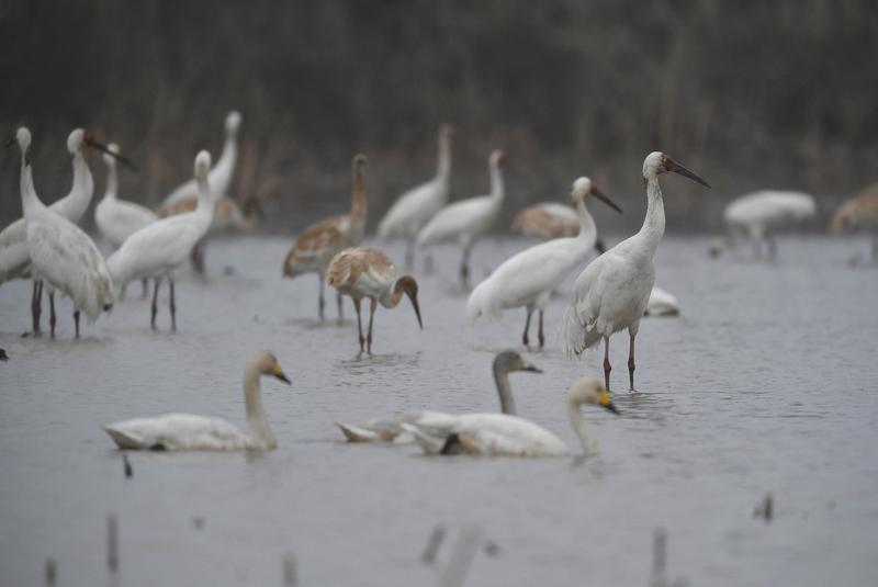 2026年新年第一天,鄱阳湖畔的南昌市五星白鹤保护小区热闹非凡。从西伯利亚飞来的“远客”——越冬候鸟们,在烟雨朦胧中舒展羽翼,上千只白鹤尤为瞩目。 白鹤可是“鸟类大熊猫”,全球约6500只,98%都在鄱阳湖越冬。如今小区监测到近18000只候鸟,其中白鹤1500余只。这里是“全世界离白鹤最近的地方”,候鸟习惯与人近距离相处。 不少观鸟和摄影爱好者专程赶来。杭州的徐靖享受用望远镜观察白鹤的细节;浙江的金瓯体验了“拍鹤自由”;香港的邓智聪觉得雨中白鹤更有意境。鄱阳湖真不愧是候鸟的美好家园!
