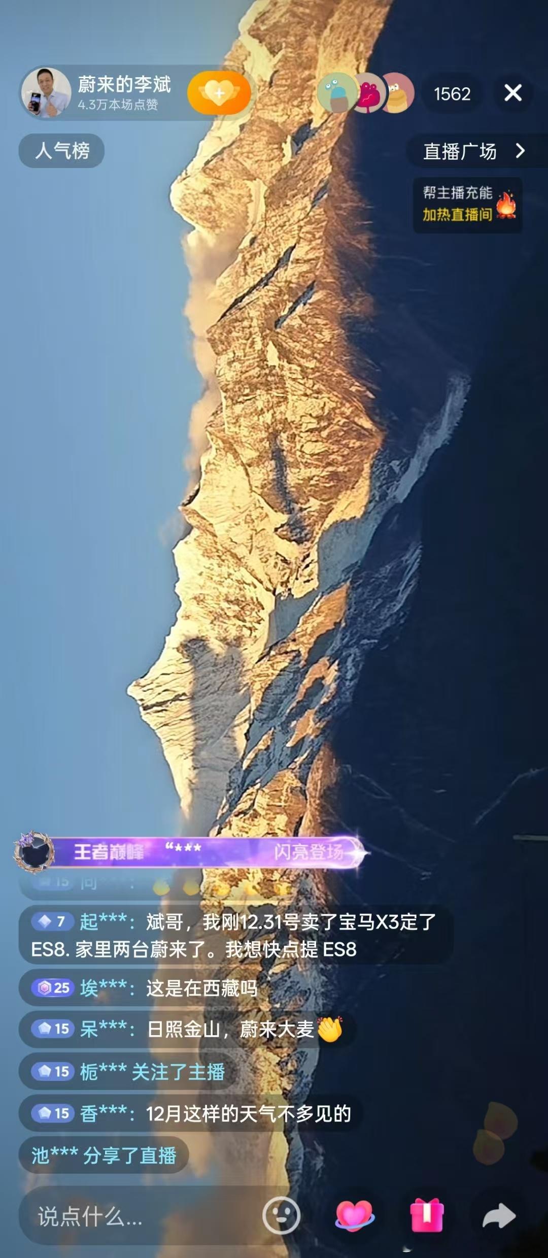 斌哥上一次看到日照金山是在2025年8月中旬后面的故事大家都已经知道了这一次是在2026年1月2号后面的故事大家一起继续见证日照金山,蔚来大卖2026年,蔚来加电蔚来汽车