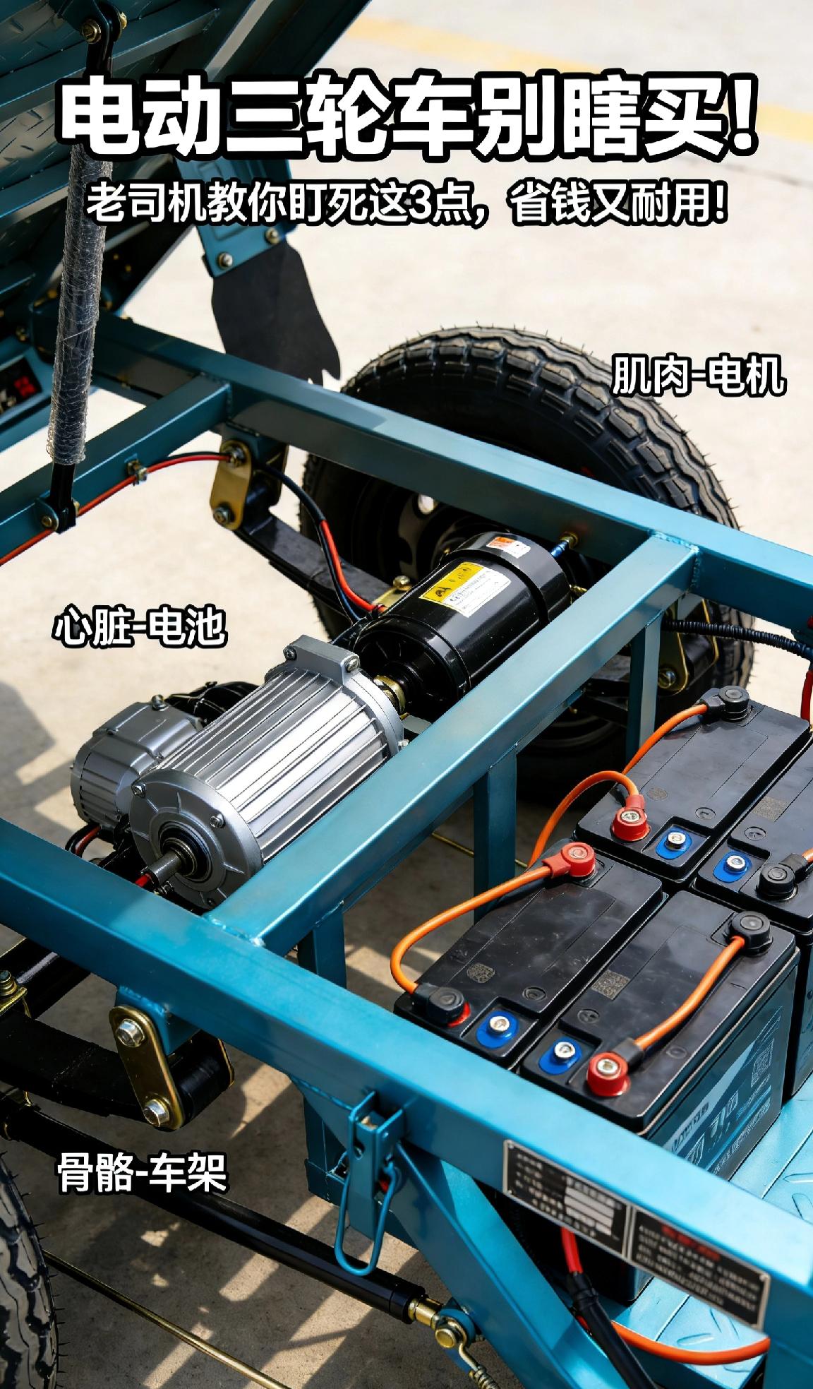 电动三轮车避坑指南🔥老司机私藏3招,买对不花冤枉钱! 想买电动三轮车怕踩雷?别被商家套路了!记住这3个核心要点,耐用又省心,新手也能闭眼冲~ ✨ 硬核三大件:电池认准天能、超威等大牌,问清真实续航和质保;电机试车听声,平稳无杂音、爬坡有劲才靠谱;车架蹲下来查焊点,牢固均匀、手摇不晃才抗造! ✨ 细节见真章:线路规整不凌乱、刹车灵敏不回弹、漆面均匀无瑕疵,这些小细节藏着厂家良心,千万别忽略~ ✨ 口碑是底气:选线下门店多、售后完善的品牌,多翻真实用户长期评价,比商家吹得天花乱坠管用多了! 最后划重点:一定要试驾!感受起步平顺度和减震效果,小厂拼装款再便宜也别碰,安全永远排第一~ 电动三轮车 选购攻略 避坑指南 用车干货