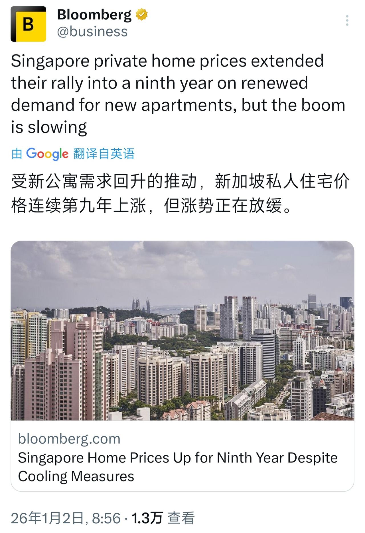 不看不知道,一看吓一跳! 新加坡房价已经连续上涨9年了! 感觉除了我们,其它国家房价都在涨? 为什么会这样?