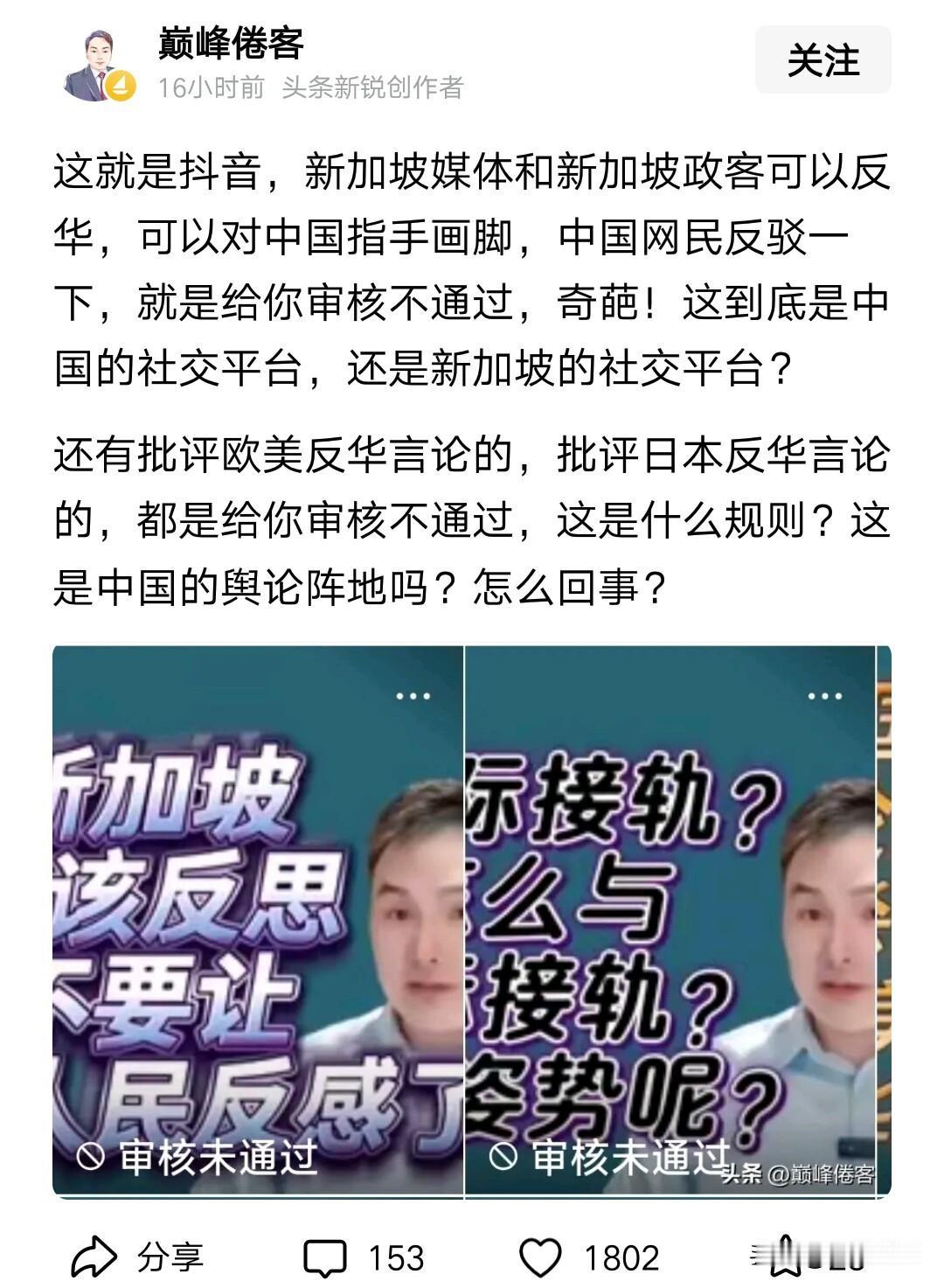 终于有人把这个问题说出来了, 而且还是个百万粉丝的发声, 在某些平台上,常常可以看到对我们指手画脚的言论和视频,也没有看见哪个被封哪个被限流,而那些批评小日子,大漂亮,印坡县的文章往往不会被推流。 如果不相信的,自己可以试一试,只要是批评这些国的就是不给通过,也不知道是怎么回事。