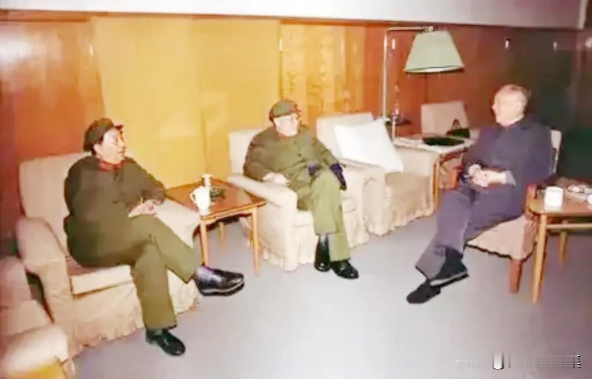 1982年,李先念同志(右一)听取北京军区司令员秦基伟将军(左一)和北京军区副政委罗应怀将军(中)汇工作时的照片。1982年正值军队精简整编、推进现代化建设的时期。北京军区作为卫戍首都的大军区,承担着重要使命。