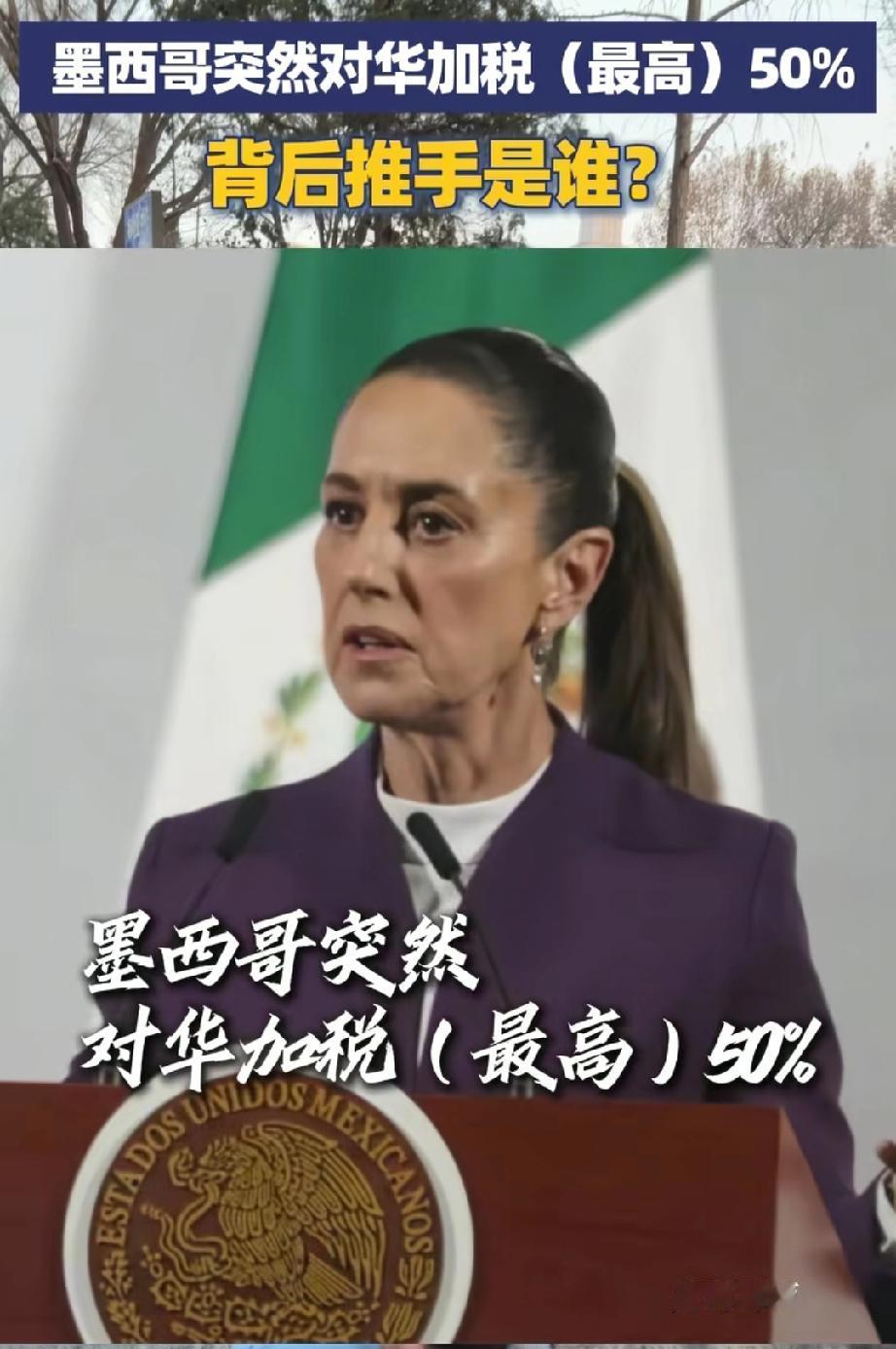 给美国交“投名状”?2026年元旦,墨西哥一项针对中国等国家的重磅关税新政正式生效。新政策对约1400种进口商品加征最高达50%的关税,范围覆盖汽车、钢铁、纺织、玩具等核心产业。外界普遍认为,这是在美国压力下,墨西哥为讨好美国、在《美墨加协定》审查前递上的一份“投名状”。 这次关税的矛头,直指中国。比如,中国出口到墨西哥的整车关税,直接从约20%飙升至50%。汽车零部件、钢铁产品等也面临25%至35%不等的重税。 墨西哥为什么对自己这么“狠”?关键压力,来自北方邻居美国。美国主导的《美墨加协定》规定,汽车要享受零关税,75%的价值必须在北美地区生产。 随着中国汽车和零部件近年来大量出口墨西哥,美国担心中国商品借道墨西哥“跳板”进入美国市场,因此不断向墨西哥施压。 2026年7月,该协定将迎来关键审查,墨西哥此时大幅加税,被广泛视为向美国表忠心的举动。 然而,这一刀砍下去,最痛的可能是墨西哥自己。中国是墨西哥第二大进口来源国,更是其汽车产业的重要“心脏”。从2020年到2024年,中国对墨西哥的汽车出口量暴增了十几倍。 墨西哥的工厂严重依赖中国的零部件进行组装,再出口到美国。如今成本骤然飙升,墨西哥制造的价格优势将大打折扣,其作为“近岸外包”枢纽的地位将被动摇。 有网友说:“这是典型的被人卖了还帮人数钱!” “为了讨好主子,连自家的饭碗都敢砸,真是蠢到家了。” 看着这些评论,我心里既气愤又觉得可悲! 气愤的是,一些国家为了眼前的“政治正确”,甘愿牺牲本国企业和百姓的利益,甘当别人的棋子。 可悲的是,这种“背信弃义”的戏码在国际上屡见不鲜,但它们似乎永远记不住教训。 墨西哥的决策者们应该听听自己工厂老板的心声。早在关税出台前,就有墨西哥制造商哀叹:“每增加1%的关税,路上就会少许多行驶的卡车。” 当整车生产成本因关税暴涨,最终为这一切买单的,将是墨西哥的消费者和整个产业链上成千上万的工人。 这不是在保护产业,这是在自毁长城!中国拥有全球最完整、最高效的工业体系,世界离不开“中国制造”。 墨西哥想用高墙把中国产品挡在外面,结果只会让自己的工厂因缺少零件而停产,让本国商品因成本高涨而失去市场。这份送给美国的“厚礼”,最终会变成砸向自己制造业的“重锤”。 在国家利益的博弈中,丧失独立自主、盲目选边站队,最终只会沦为牺牲品。 国与国之间的交往,唯有坚持平等互利、相互尊重,才能走得长远。 中国的回应冷静而有力,我们早就启动了贸易投资壁垒调查,有足够的工具和空间维护自身利益。世界很大,朋友很多。 而墨西哥需要想清楚,当它为了迎合一个伙伴而得罪最重要的合作伙伴时,失去的会不会比得到的更多?时间,会给出最公正的答案。
