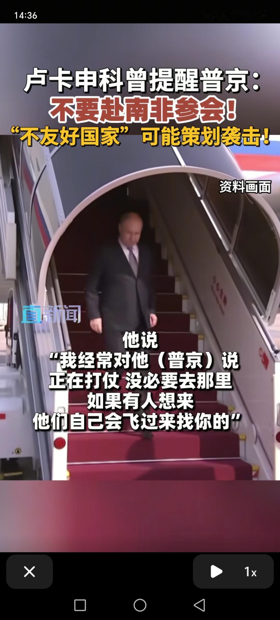 白俄罗斯总统卢卡申科真是普京的好兄弟,提醒普京不要到南非去,到南非有危险,现在俄乌战争还未结束,有不少国家敌对俄罗斯。南非是友好国家,但不代表在那里参会的国家都是友好国家,到时候不能保证普京的安全。普京最好还是别冒险去,俄罗斯需要普京,白俄罗斯也需要普京。如果有一些国家真的需要普京,可以到俄罗斯来,俄罗斯能保证他们的安全。卢卡申科是一个非常优秀的政治家,特别务实,而且给俄罗斯关系是亲如一家,处处有俄罗斯考虑,一切从俄罗斯的国家利益考虑。