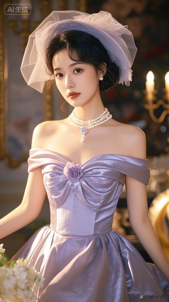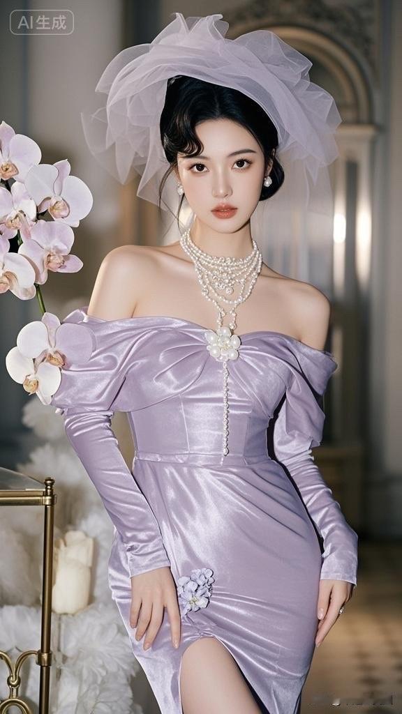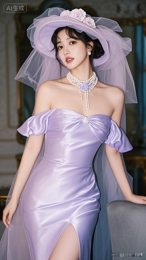 梦幻紫色礼服,优雅珍珠项链,甜美公主风!💖✨