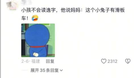 小孩不会读逸字,他说妈妈:这个小兔子有滑板车!