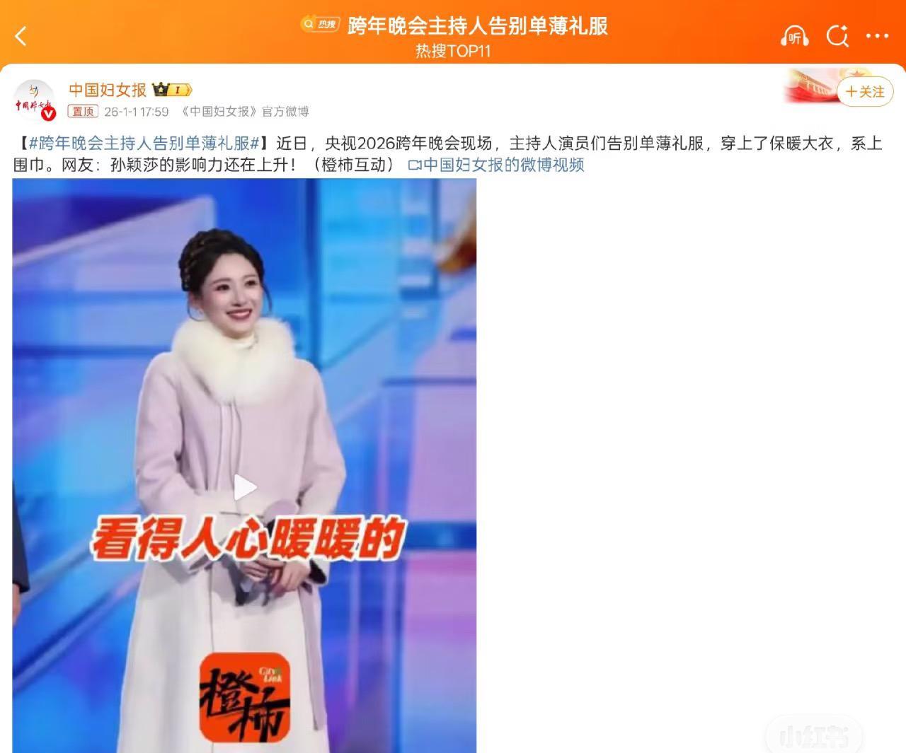 莎莎的一句话,真的让人很暖心,一己之力改变了主持人硬撑穿着单薄礼服,太有温暖,这一份力量够足! 中果妇女报更是直接表达,对这个优秀孩子的评价,这是孙颖莎的含金量! 莎莎参加活动,提到让主持人穿羽绒服,真的就这样实现了,因为她是中国女性的伟大代表,她是这样温暖人心的小太阳,孙颖莎都会为她骄傲的!