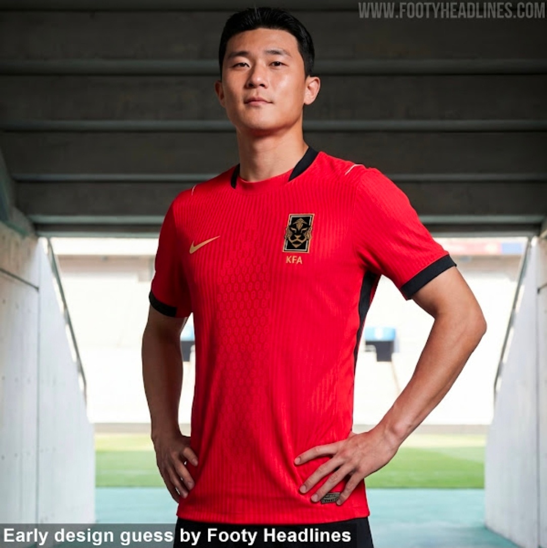 韩国队美加墨世界杯球衣预测照:传统红色搭配黑金logo足球装备网站FootyH