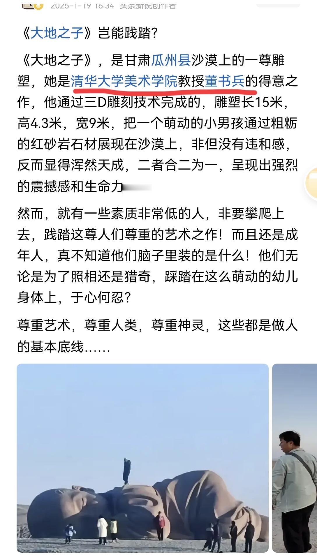 [思考]甘肃的沙漠戈壁,大概已经成为“雕塑家”们“展示基地”了——如果说“汉武大帝”的雕塑还是“理解争议”(我个人倾向于“正面理解”)的话,清华美院搞的“大地之子”,就是纯的“白左移植”恶心人了[吐彩虹]叙利亚“海滩男孩”的事是2015年出的(德国“白左”势大,直接导致默克尔被迫“政策转向”),这个“作品”是2016年“自筹经费”建的——清华美院董某人,真的是💰太多了、非要“为爱发电”?