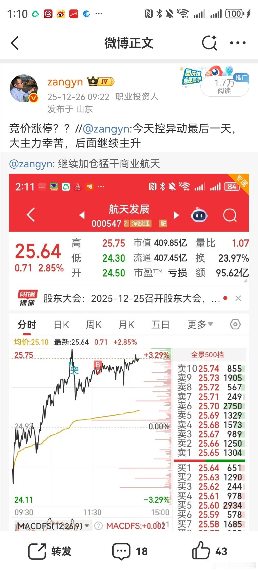 这次做商业航天几大龙头的单子我都是第一时间晒出来了,因为需要时刻盯盘判断出谁是商业航天的大龙头,从盘面判断出来到做投资决策,再发给大家,有个时间差,但基本龙头都有个30%-50%的主升空间,都是能第一时间跟上。国晟科技+商业航天古典龙头战法,根据这两大操盘盈利利器修正自己想法和账户操作就行了。