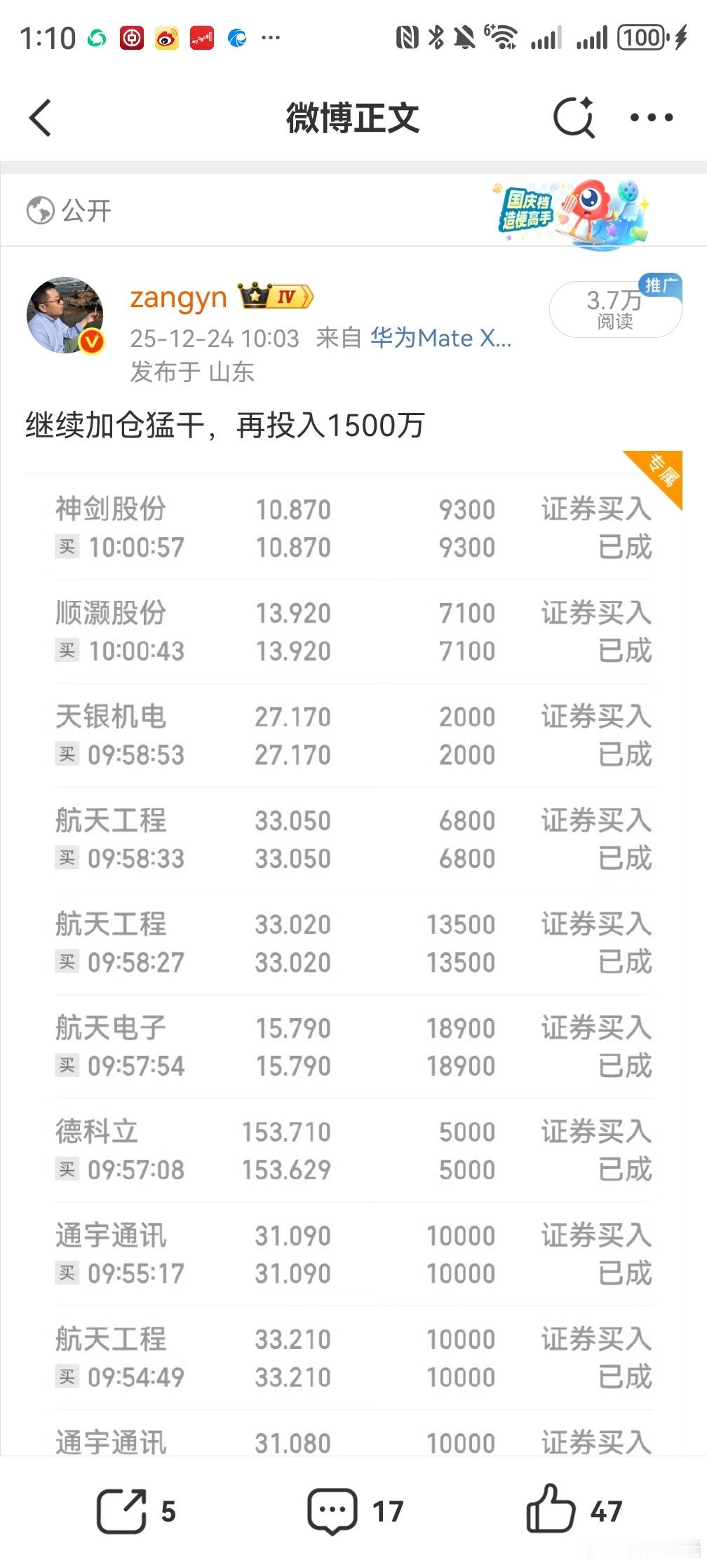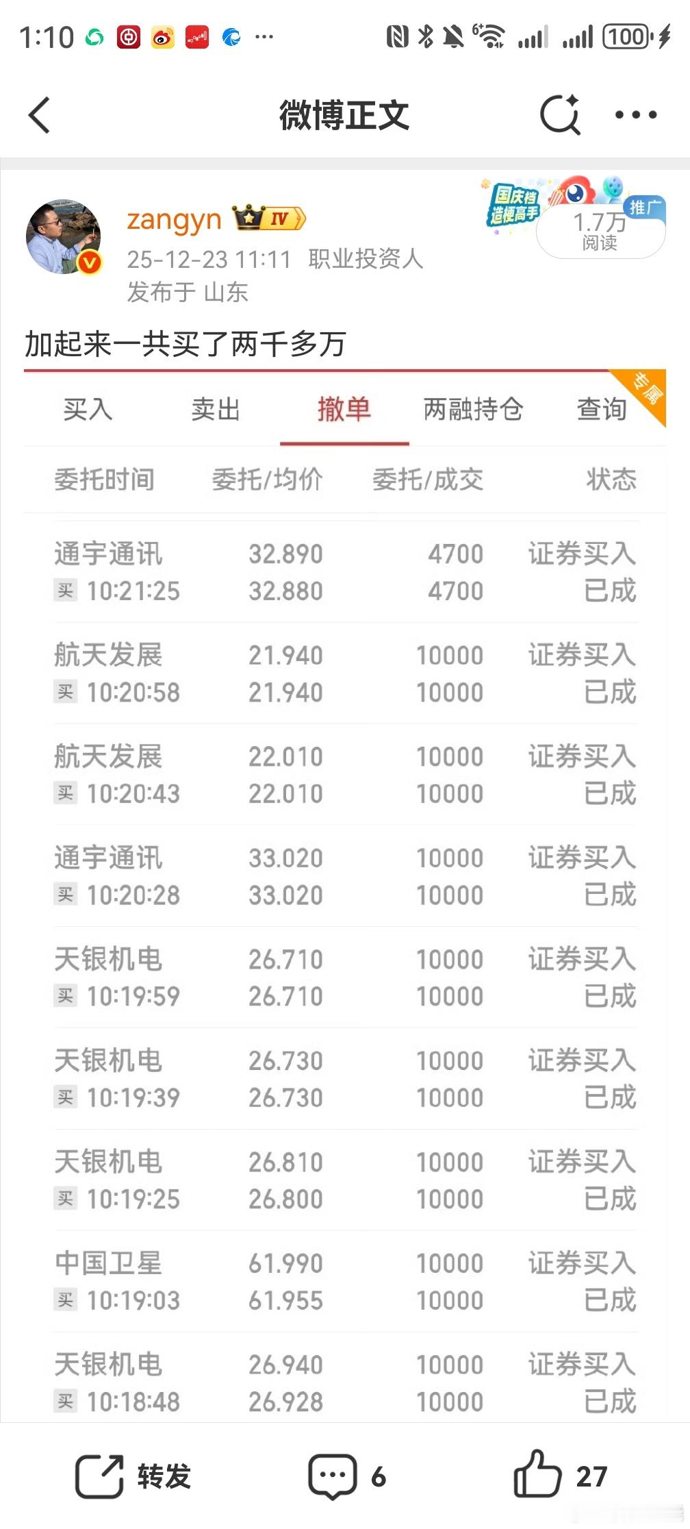 这次做商业航天几大龙头的单子我都是第一时间晒出来了,因为需要时刻盯盘判断出谁是商