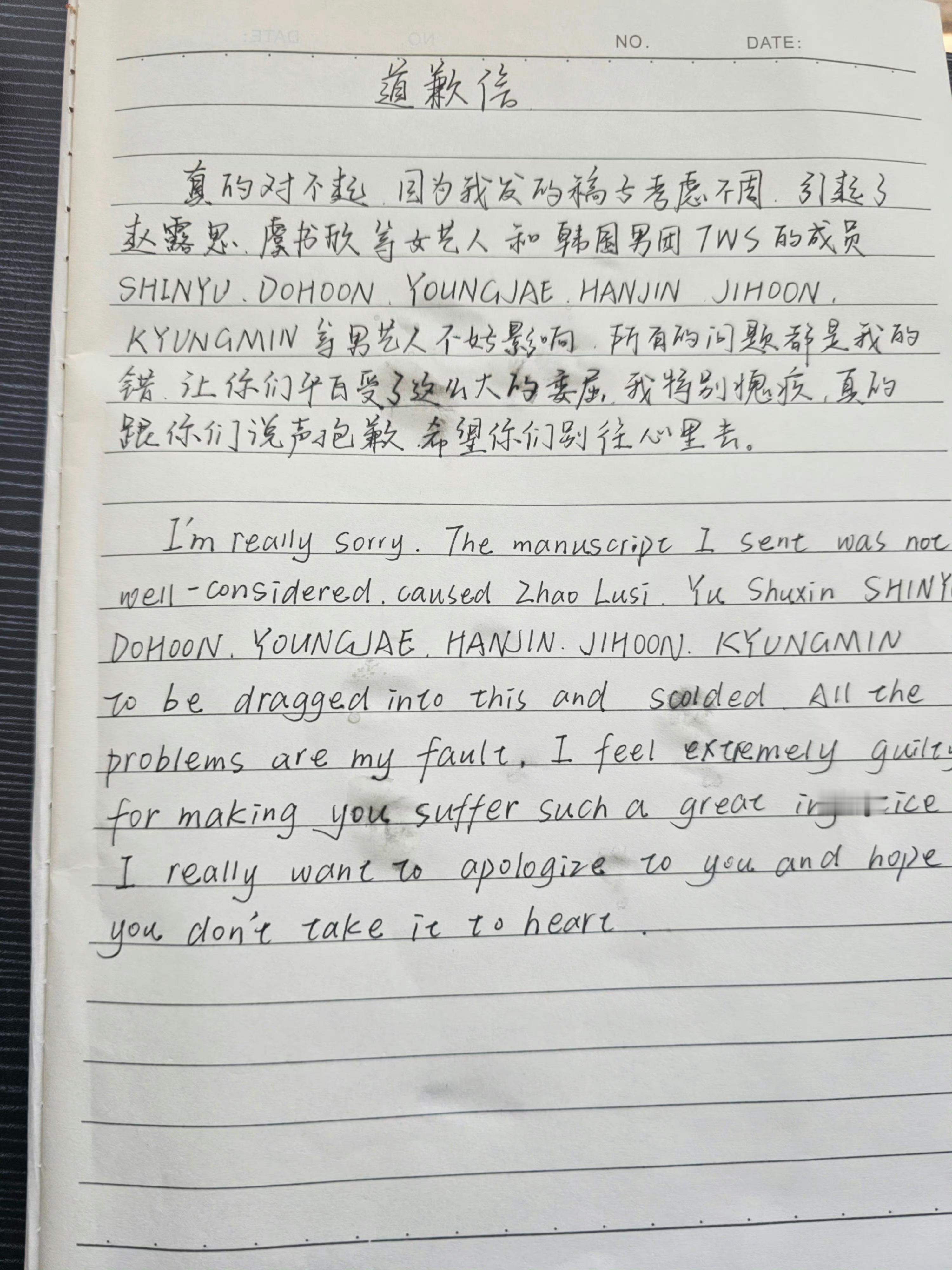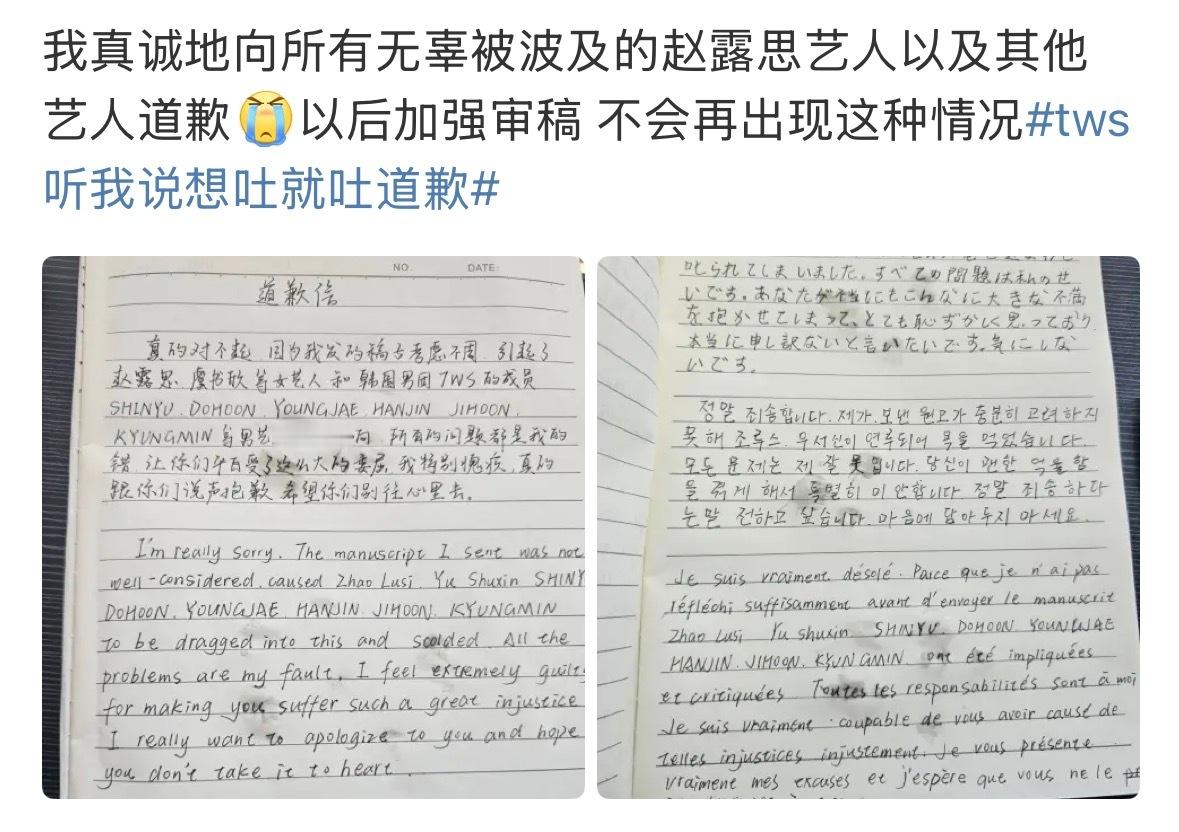 TWS韩厕用五种语言向赵露思以及其他艺人道歉
