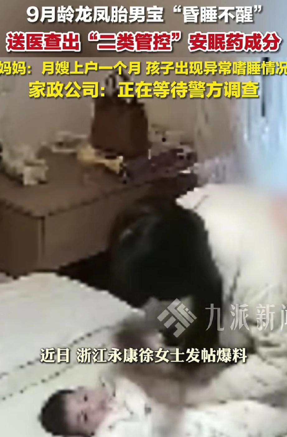 良心被狗吃了?浙江永康的徐女士花7600元请了位育儿嫂,本想让她好好照顾9个月大的龙凤胎男宝,结果育儿嫂上户才一个月,宝宝就突然昏睡不醒。送医一查,孩子体内竟检出二类管控安眠药“唑吡坦”!目前育儿嫂已被警方带走调查,涉事家政公司却甩锅称“不清楚情况”。 2025年11月,徐女士通过当地“可依家政”公司,以每月7600元的高薪请了位育儿嫂来照顾自家龙凤胎。一开始看似没啥问题,可才过一个月,细心的徐女士就发现男宝不对劲:他总是睡不醒,奶吃得越来越少,身上还长出了红疹。 到了12月30日晚上,可怕的事发生了!宝宝突然陷入深度昏迷,任凭家人怎么拍打、呼唤,都毫无反应。一家人又急又怕,赶紧报警并把孩子送进了金华市中心医院。 医院检测结果一出,所有人都惊呆了——宝宝的血液和尿液里,居然有“唑吡坦”的成分!这是一种受严格管制的第二类精神药品,是强效镇静催眠药,明确规定不能给18岁以下儿童使用。 徐女士当场懵了,自家宝宝因为尿道畸形,只在吃小剂量的阿莫西林,根本不可能接触到这种药。可面对质问,育儿嫂却死不承认,还嘴硬说自己“问心无愧”。 好在家里监控拍到,事发当晚她以哄睡为由关上了房门。目前,警方已经介入,育儿嫂也被带走调查了。 而涉事的家政公司,面对询问只会说“不清楚具体情况”,甚至还帮育儿嫂甩锅,暗示是宝宝本身吃药才出的问题。 有网友怒怼:“9个月的宝宝啊,她怎么下得去手?为了自己偷懒,给孩子喂安眠药,心是黑的吧!” 也有心疼得:“这药对这么小的宝宝伤害得有多大?当妈的想想都要崩溃!” 更多人呼吁:“必须严惩这个恶毒的育儿嫂!家政公司也得好好查查,是怎么把这种人招进来的!” 咱们花那么多钱请育儿嫂,是把孩子的安危托付给她,结果她倒好,给孩子喂违禁药!哪个当家长的能不气、不心疼?这哪里是照顾孩子,简直是拿孩子的命开玩笑! 咱找育儿嫂、家政人员,千万要把眼睛擦亮,仔细核查背景!同时,我们也盼着警方能尽快查清真相,让作恶的人得到应有的惩罚。 好在从2025年3月1日起,国家实施了《0~3岁婴幼儿居家照护服务规范》,对育儿嫂的服务要求、技能标准和机构管理都做了明确规定。 也希望所有家政从业者记住:你照看的不是一个“工作对象”,而是一个家庭的全部希望!只有敬畏生命、守住职业底线,才配得上那份信任和报酬。 别让“育儿”变成“害儿”,家政行业真的该好好整顿了!也让我们一起为这个宝宝祈福,希望他能早日康复,健康成长!