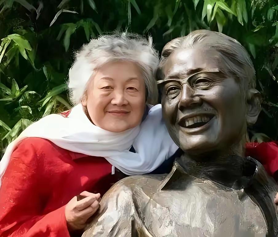 王铎:章含之与乔冠华雕像合影