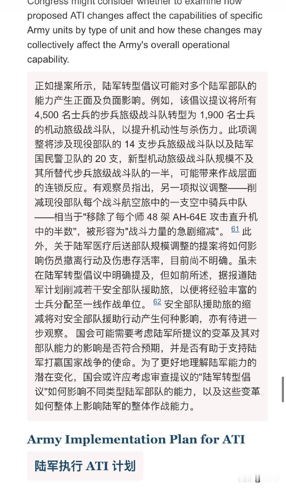 根据赫格塞斯的美国陆军转型计划ATI,美国陆军除了砍陆航(移除了每个师 48 架 AH-64E 攻击直升机中的半数)、砍直升机医疗后送力量以外,还准备把14个美国陆军和20个国民警卫队旅——也就是所有约 4500 名士兵的步兵旅战斗队(IBCT),改编为 1900 名士兵的机动旅战斗队(MBCT),新型机动旅级战斗队规模不及其所替代步兵旅级战斗队的一半,废除了陆军六个安全部队援助旅中的三个或更多。目的是什么呢?“据报道,陆军部长曾表示陆军转型倡议可能在五年内节省 480 亿美元成本。”美国国会:别砍了,砍的我们有点害怕。什么叫“美国陆军也有斩杀线”?