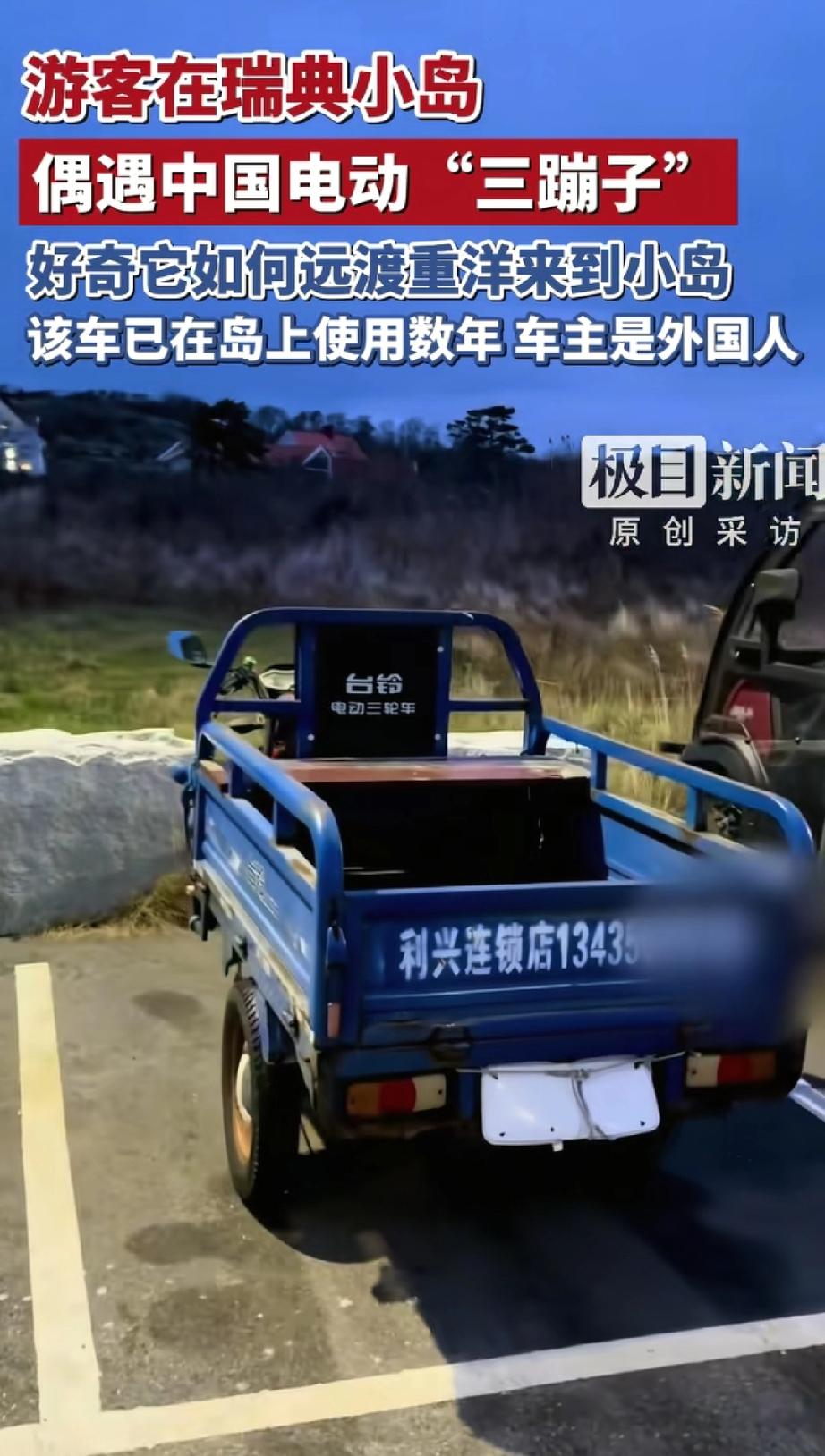 人在国外,魂穿老家?游客在瑞典小岛偶遇中国“三蹦子”杨先生去瑞典一座小岛旅游,竟在路边撞见一辆印着中文的电动“三蹦子”,车主是外国岛民,这车已经在岛上服役好几年了。杨先生又惊又奇:咱国内的“三蹦子”咋跑到瑞典小岛来了? 杨先生去的那座小岛,从瑞典哥德堡坐船过去也就个把小时,岛不大,路上还窄,弯多坡也陡。他正逛着,一辆蓝色电动三轮车毫无预兆地闯进视线——车身上“利兴连锁店”的中文字样格外醒目,那瞬间杨先生都恍惚了,差点以为自己没出国,还在国内乡镇上呢! 惊喜过后,杨先生满脑子都是问号:这“三蹦子”到底咋从中国跑到瑞典小岛的?他想找车主问问,没遇上,只听当地人说,车主是位岛民,已经开着它好几年了,平时拉货、打理院子,用着特别方便实用。对岛民来说,这不是啥新奇玩意儿,就是个靠谱的干活工具。 有网友激动地说:“咱中国的‘三蹦子’都杀到瑞典小岛了,这耐用性、实用性,不服不行!” 还有网友感慨:“在国外看到家乡的车,自豪感直接拉满,中国制造太给咱长脸了!” 大家都觉得,一辆普通的电动三轮能在国外被用好几年,这质量绝对没话说,中国制造就是这么牛! 可不是嘛!咱们平时觉得很“接地气”的电动三轮,跑到国外小岛还成了香饽饽,这说明啥?说明中国制造的实用性和耐用性,在全世界都吃得开! 你看,一辆不起眼的中国“三蹦子”,在瑞典小岛一用就是好几年,还被外国岛民当成宝贝工具。这可不是偶然,它是中国制造实力的一个生动缩影。 中国制造早就不是以前的样子了,不管是高大上的科技产品,还是像“三蹦子”这样的实用工具,只要够好用、够可靠,就能在全世界找到自己的位置。 这辆瑞典小岛上的“三蹦子”,就像个信使,告诉全世界:中国制造,普通但不可或缺,好用就是硬道理!咱就说,这样的中国制造,难道不值得咱们狠狠骄傲一把吗?