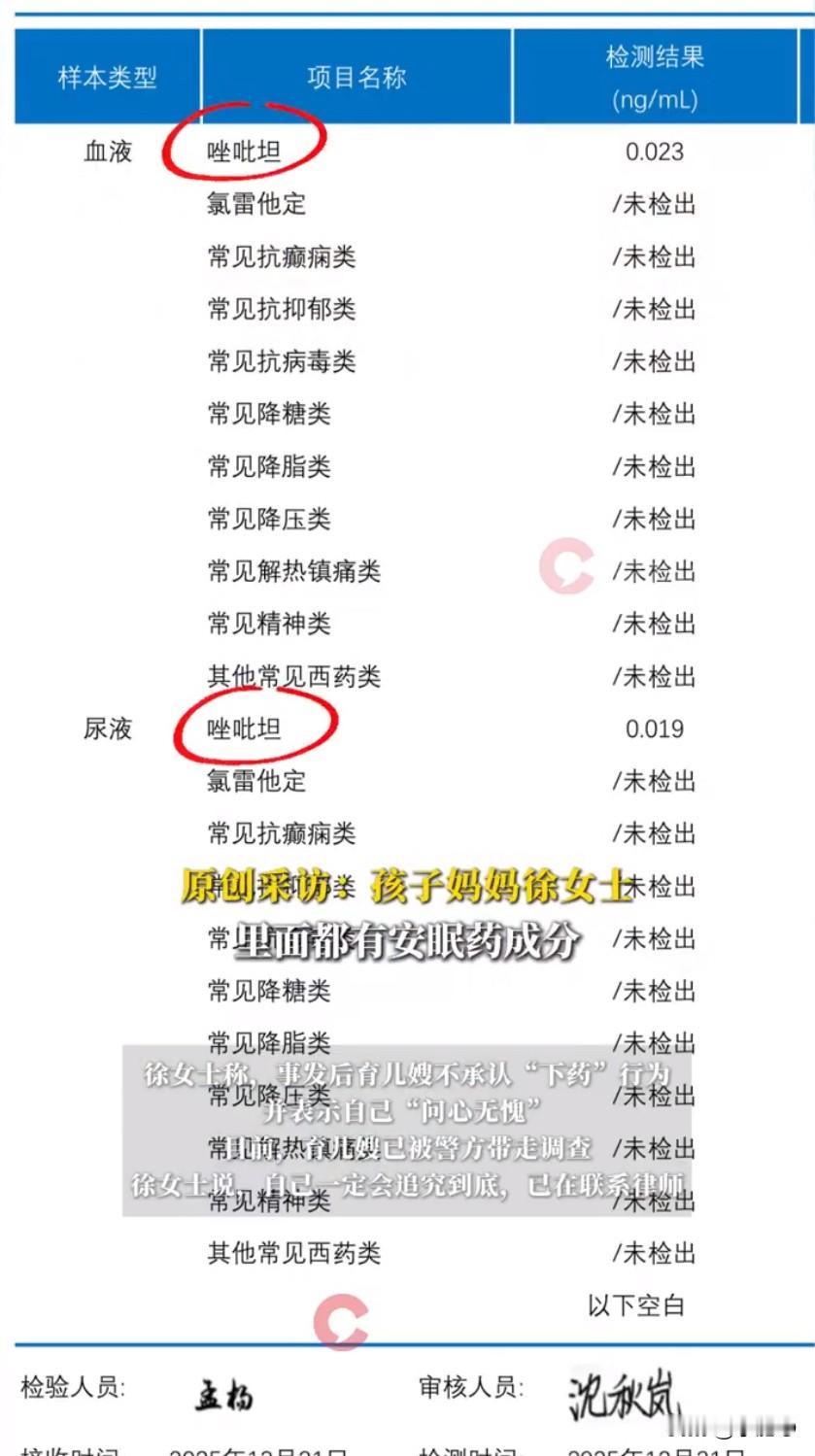 浙江永康的徐女士家最近出了件让人心惊肉跳的事,自家9个月大的龙凤胎男宝突然变得昏睡不醒,一查才发现,宝宝体内竟然有安眠药成分,而嫌疑人正是家里请的育儿嫂。这件事一曝光,瞬间让不少请了育儿嫂的家庭都捏了把汗。 徐女士之前通过当地一家家政公司,以7600元26天的价格请了这位育儿嫂,本想着能有人帮着分担照顾宝宝的压力,没想到却给孩子带来了风险。育儿嫂上户一个月后,徐女士就发现宝宝不对劲了,以前活泼好动的小家伙变得特别能睡,属于那种怎么叫都难醒的嗜睡,奶量也比以前少了很多,身上还莫名长起了红疹。一开始徐女士还以为宝宝是生病了,没往育儿嫂身上想,直到有天晚上,宝宝直接昏睡不醒,不管家人怎么逗弄都没反应,这才意识到情况严重,赶紧带着宝宝去了医院。 医院的检查结果让全家人都炸了锅,血检和尿检报告里明确显示,宝宝体内含有“唑吡坦”成分。可能很多人对这个药不太熟悉,其实它是一种专门治疗严重失眠的短效镇静催眠药,属于第二类精神药品,管控得特别严,必须凭专用处方才能购买使用。而且这种药根本不适合小孩用,18岁以下青少年都不建议使用,对9个月大的婴儿来说,风险更是难以想象,可能会出现嗜睡、幻觉、认知障碍这些不良反应,严重的还会影响身体发育。 徐女士一家人赶紧报警,同时和育儿嫂对峙,可对方却一口否认,说自己“问心无愧”,还说宝宝本身就在吃药。但徐女士解释,宝宝只是因为尿道畸形在吃小剂量阿莫西林,根本不可能接触到这种管控类安眠药。从家里的监控来看,当时育儿嫂说要哄宝宝睡觉,关了房门和灯后在角落有异常动作,之后宝宝就出现了昏睡情况,虽然没直接拍到下药过程,但种种迹象都指向了她。目前涉事育儿嫂已经被警方控制,案件还在进一步调查中,宝宝虽然神智尚可,但出现了皮疹、不睡觉等药物戒断反应,让家人心疼不已。 家政公司方面则表示不清楚具体情况,只等着警方的调查结果。这件事也给很多家庭提了个醒,现在找育儿嫂真的得擦亮眼睛,不能只看证书和中介介绍。之前也有过不少育儿嫂暴力对待婴儿的新闻,有的强行灌奶,有的用力摇晃宝宝,这些行为都可能对孩子造成不可逆的伤害。大家雇佣看护人员时,不仅要仔细核查对方的资质和背景,最好在家中安装监控,设置试用期,多留意孩子的状态变化,一旦发现异常就得及时警惕,毕竟宝宝的安全才是最重要的,可不能掉以轻心。 来源:晨视频
