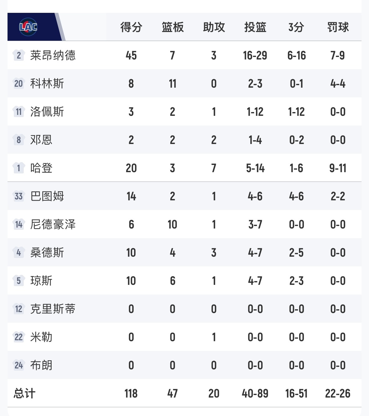扬帆起航六连胜,伦纳德45分6个三分球,哈登20分7助攻1失误。看来能阻挡快船的