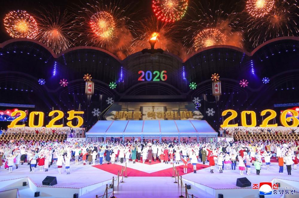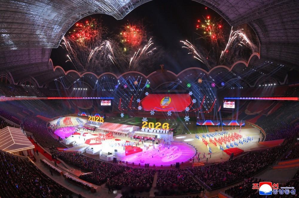 金正恩同志观看了跨年演出。在欢迎曲声中,金正恩同志步入观众席,全场一片欢腾。全体观众和表演者仰望着主体革命的卓越领导者、人民的慈祥父亲,表达无尽的敬意与无穷的光荣,礼赞他把社会主义我们国家建设成为人民的永恒万福之花园,努力开创子孙万代辉煌灿烂的强国未来。金正恩同志向热烈欢呼的群众挥手致意,并向心爱的全国人民致以亲切的问候。