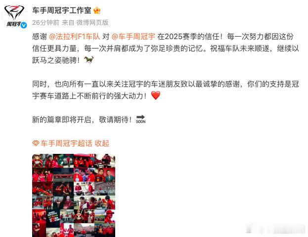 1月2日下午,法拉利车队在其官方社交媒体上正式宣布,中国车手周冠宇不再担任法拉利F1车队的储备车手。对于法拉利,周冠宇并不陌生。早在这名中国车手2014年驰骋在卡丁车赛场时,他就加入了法拉利车手学院,并在一年后获得意大利F4锦标赛年度亚军。去年重回法拉利之后,周冠宇也成为了首位加入法拉利F1车队的中国车手。关于周冠宇的下一站,让我们再耐心等待一下吧!