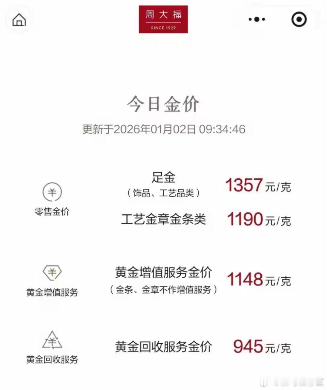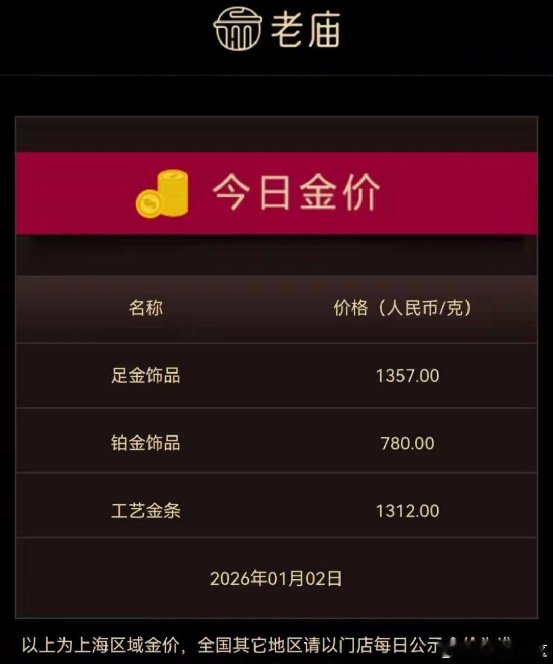 金价,大反转!柜台被挤“爆”!1月2日,贵金属集体走高,现货黄金跳空高开,日内大涨59美元,突破4370美元/盎司,上涨1.31%。现货白银日内涨幅一度扩大至3.29%,向上触及74美元/盎司。现货铂金、现货钯金纷纷走高,涨超2%。2025年以来,以黄金为代表的贵金属受到资本的热捧。在美联储降息、央行购金热潮、ETF持仓增加以及避险情绪升温的共同作用下,纽约黄金期价累计上涨超过64%,这是自1979年以来的最大年度涨幅。同期,白银期货价格全年涨幅在141%以上。不过,与黄金不同的是,白银价格上涨更多由投机资金与工业需求强劲驱动。市场数据显示,全球白银供应已连续5年处于结构性短缺状态。随着金银价格不断创下新高,部分资金外溢至铂金和钯金市场,叠加美元指数全年重挫超9%,拉动铂金和钯金期货价格大幅飙升,2025年分别累计上涨超过124%和81%。1月2日,国内连锁品牌金饰价格止跌。周生生足金饰品报1360元/克,周大福足金饰品报1357元/克,老庙黄金足金饰品报1357元/克,老凤祥足金饰品报1360元/克。“小克重的金条已经卖没了,只剩300克以上的。”2025年12月29日,北京菜市口百货股份有限公司销售人员不时对顾客重复说明货品的情况。“‘马上有钱’系列转运珠已卖断货。”销售人员表示,元旦会补货,但具体到货时间和数量暂未确定。据悉,元旦假期首日,各大黄金珠宝品牌的足金金价下跌。周大福报价1357/克(跌6),老凤祥报价1360元/克(跌6),老庙黄金报价1354元/克(跌11),周生生报价1345元/克(跌10),六福珠宝报价1361元/克(跌6)。部分品牌在1月1日的足金克价,比2025年12月30日大跌之后的价格还要低。投资金条柜台同样挤满了人。2025年12月29日上午11时左右,投资基础金价1011.80元/克,销售人员表示,只剩300克及以上的金条。小克重金条下午3点左右或许会有货,但并不确定会有。现在小克重的金条基本一上架就会卖空。家住北京市西城区的刘女士表示,当天上午一开门她就来了,买到了一个20克的金条。买完发现金价有所回落,就犹豫要不要继续买。眼看柜台里的金条逐渐减少,刘女士又买了一条100克的金条。“主要是给孩子囤。准备一直拿着,不短线操作。”刘女士认为,“从长期来看,感觉黄金还得涨。”除了像刘女士这样分次购买者之外,也有人问完价格直接一次性带走300克、500克。12月29日19时左右,还有顾客提着现金购买了160克金条。在上海第一八佰伴六福珠宝店里,齐小姐正在试戴一款碎碎冰黄金戒指。“我今天是陪朋友来购物的,她已经在老庙黄金开好单,正在排队付款。”齐小姐说,其被商场里的热闹气氛所感染,不自觉试戴起了各种金饰,看中了手上这款3.4克的金戒指,准备“激情下单”了。“年底了,要对自己好一点,最近网上不是有热梗嘛——‘爱你老己’。选一件‘心头好’,犒劳自己一年来的辛苦。”“我们的备货金额相比去年翻了一番,店员从平时的9人增加到了今天的39人,都是从其他门店调来的销冠和体力好的男生。”周大福上海区域业务经理王毅表示,2026年跨年大促的提前预订量相比上年同期增长了20%,其中不乏百万级大单。看好黄金满足“情绪价值”和保值增值的双重作用,年轻消费者的比例也明显提高。对于元旦前后走势,中国外汇投资研究院研究总监李钢认为趋势性行情条件不足,黄金预计延续高位拉锯,白银则因已偏离基本面短期承载能力,波动风险更高,其回调与反弹幅度均可能显著大于黄金,实为波动性更高的品种而非方向更优的选择。汇丰银行最新预测,2026年,金价有望剑指5000美元/盎司关口。国信证券分析,近期白银价格暴涨,远超历史水平,主要原因可能系工业属性弹性凸显,背后是经济预期的走高、基本面的支撑;国内白银库存处于历史低位,下游制品的供给占比很大;2025年12月是白银期货的交割月;叠加近期白银暴涨带来的财富效应,吸引大量资金涌入。逼仓之下,价格暴涨。东吴期货表示,从长期基本面来看,全球科技产业与绿色产业的发展规划为白银需求提供了坚实支撑,前景依然看涨,但当前的超额上涨态势也意味着,白银仍然存在大幅回调的风险,后市需警惕盘面快速大幅回调的风险。国信证券表示,中长期仍然看好黄金资产。在弱美元、降息周期下,叠加更宏大的美元信任危机等,目前没有中长期看空黄金资产的理由。央行购金、黄金ETF的投资需求,全球地缘政治风险及脆弱性等因素,也为中长期黄金及部分实物资产提供了支撑。李钢提醒投资者关注假期三大风险:一是流动性风险,假期部分海外市场交易清淡,任何突发消息都可能引发价格的“非线性跳跃”,止损失效或滑点放大的概率明显上升;二是预期错位风险,若经济数据或政策信号与当前已包含的宽松预期不符,价格调整或更为激烈;三是品种结构性风险,黄金和白银并非同步资产,白银在杠杆、工业周期和投机资金影响下,更容易出现超预期波动,普通投资者若将其简单视为“低价黄金”,风险认知往往不足。(