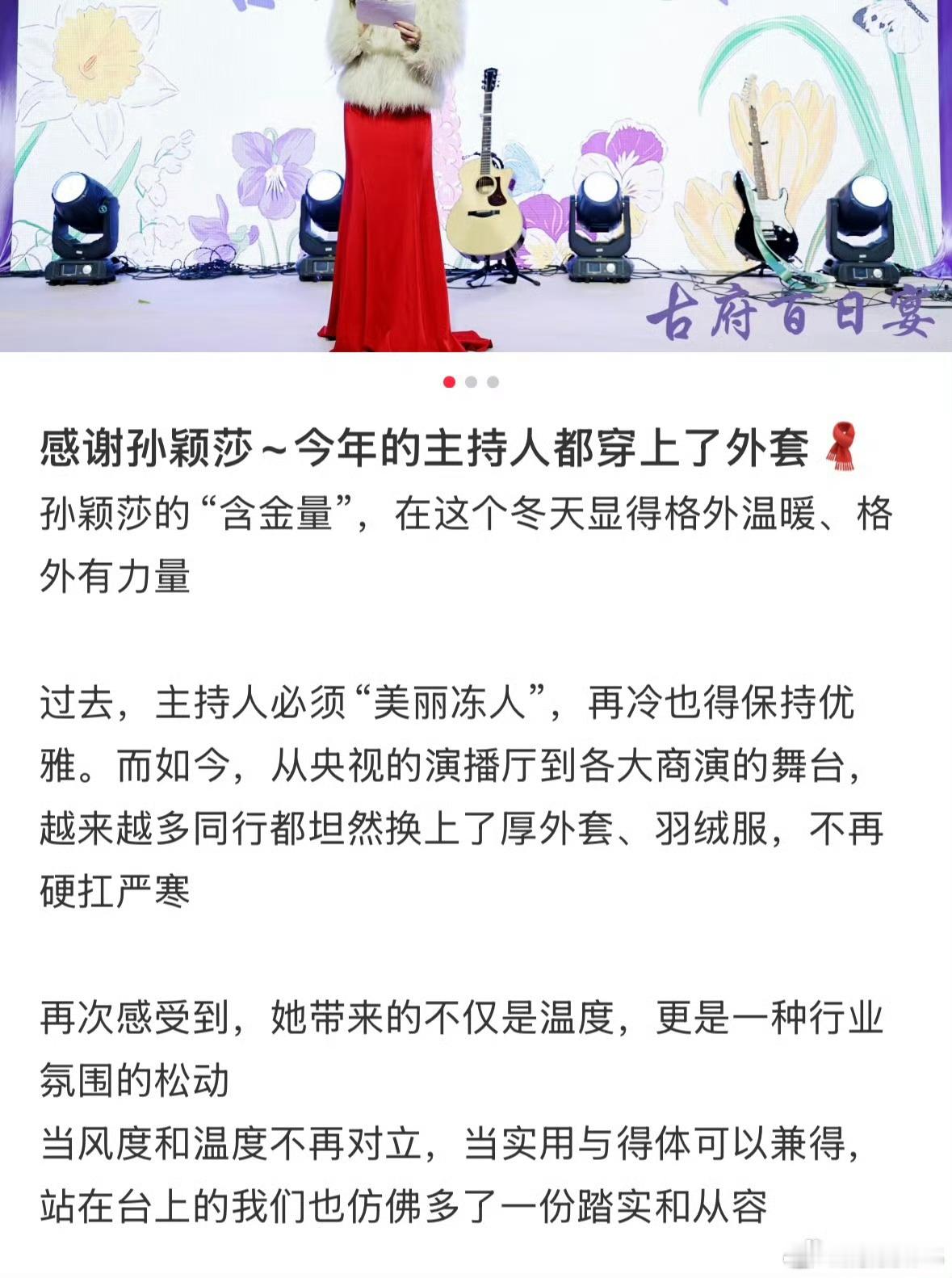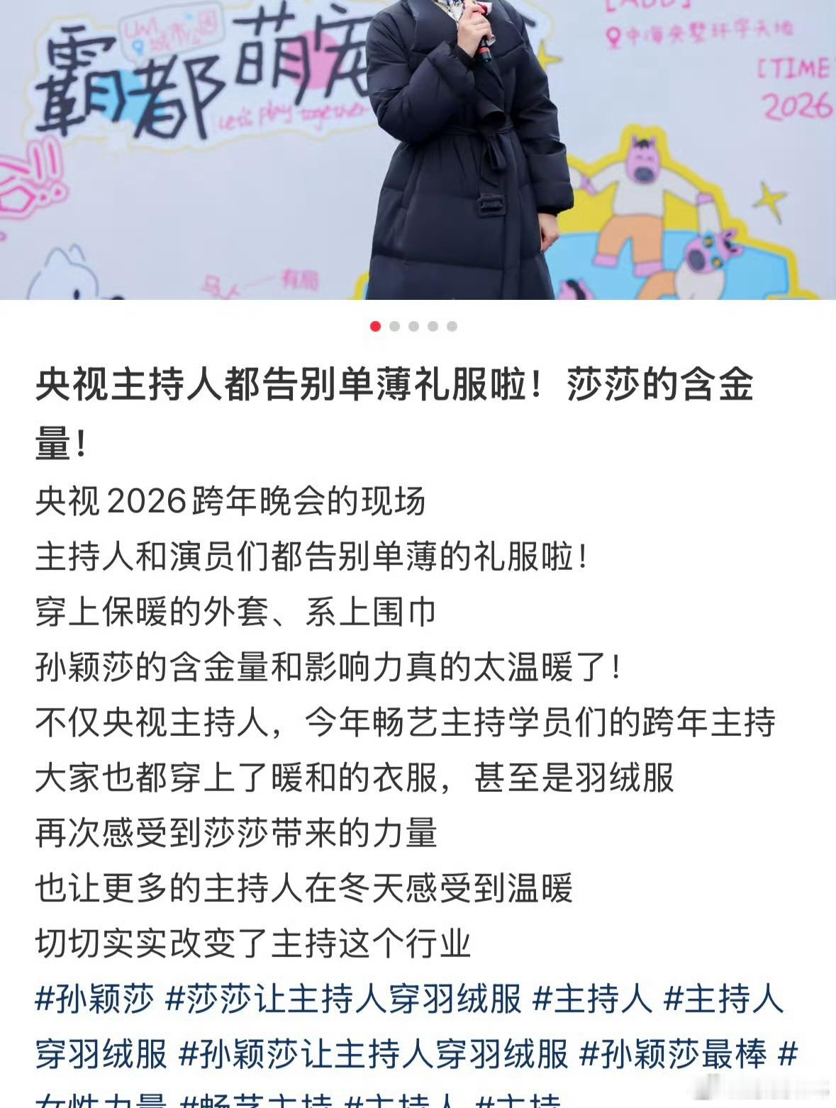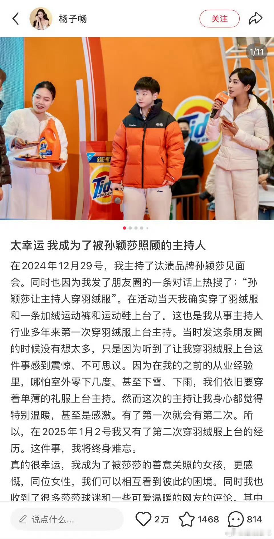 孙颖莎的话让美丽不再冻人只是因为在颁奖礼上看到了穿着单薄的礼仪小姐,小莎在心里就默默留下了种子,再到后面的活动提出了要求希望主持人能穿的暖和,最后因为自己的影响力一步步让更多女性能够在舒适的环境下工作,小太阳就这样发着光 这正是女性站在高处最动人的意义:不是独占光芒,而是以自身力量为他人托举;不是用强硬证明强大,而是让温柔与善意拥有改变的重量。 杨子畅曾称会爱莎莎一辈子