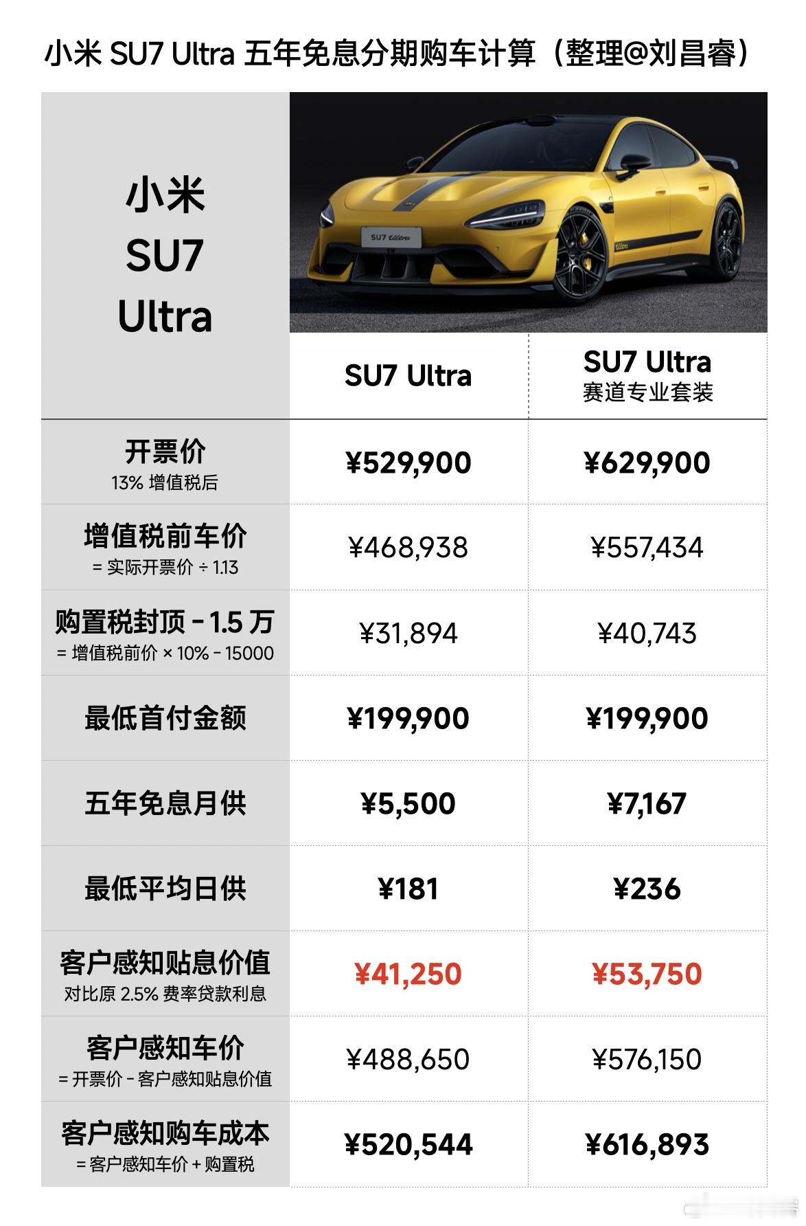 其实不止 YU7, 也推出了免息活动,而且是力度更大的五年 0 息!给大家做了表格,最低月供 ¥5500,日供仅 ¥181对比原有 2.5% 费率贷款,最高可省 5.37 万利息YU7 三年免息,SU7U 五年免息,SU7 却没有免息这是否说明……大家敬请期待吧~