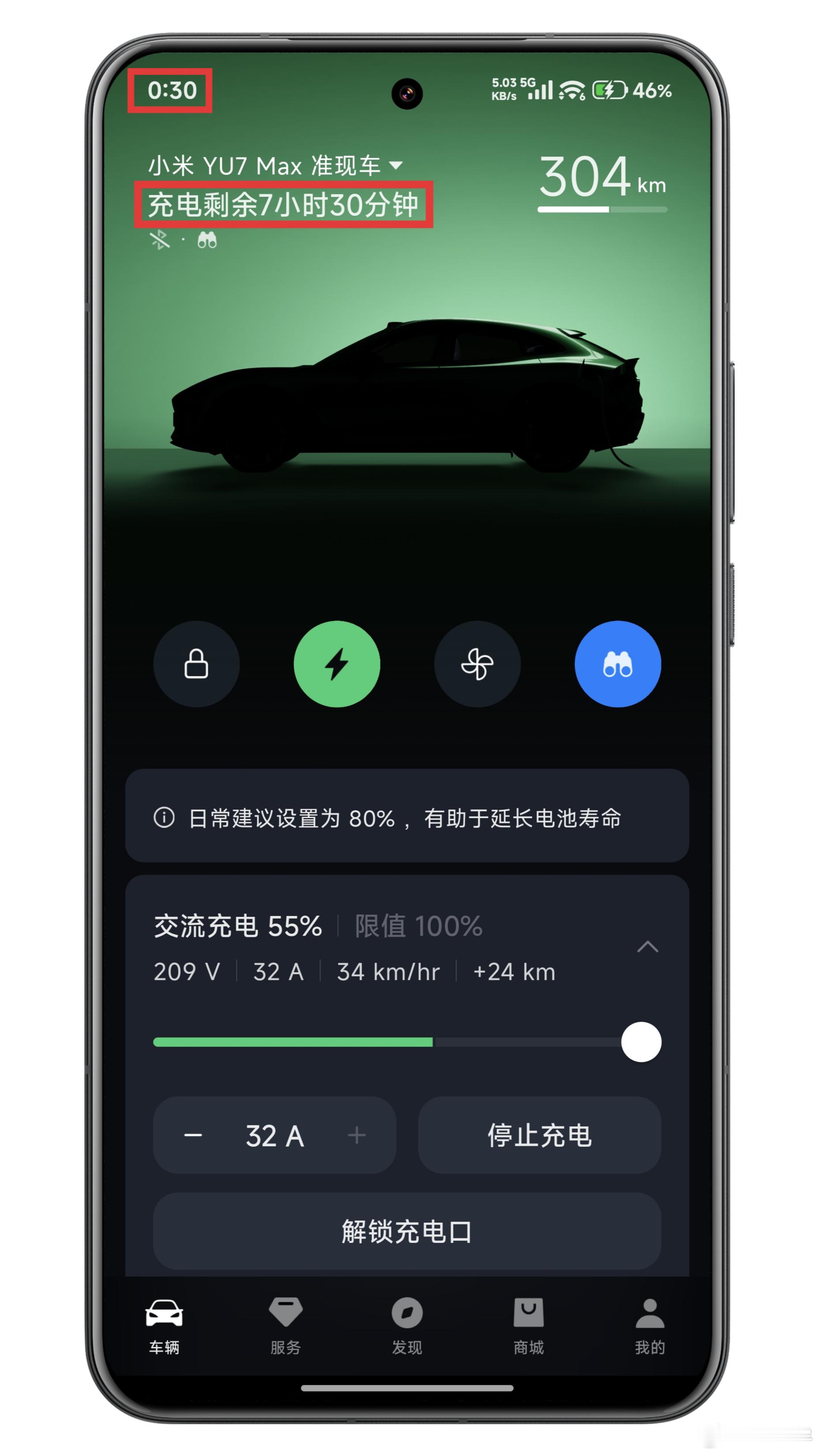 今晚在给我的 充电!⚡谷电时间是 0:00-8:00(这个时间段电费最低)0:30 时提示刚好剩余 7.5 小时能充到 100%🔋简直超级治愈强迫症(虽然我也不会让他充满)