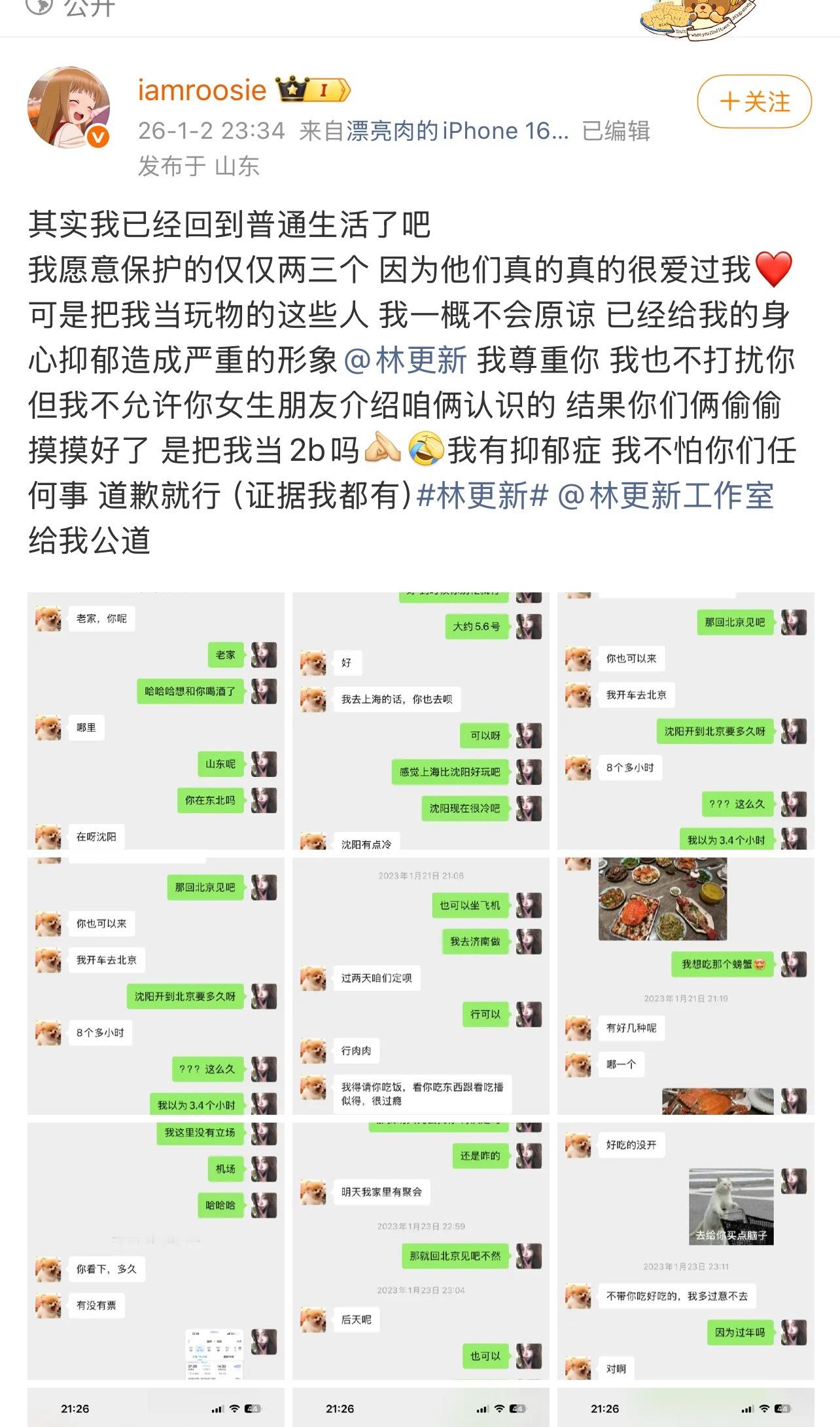 之前爆料李汶翰的司晓迪(肉肉)深夜喊话林更新道歉,还提到了李汶翰,范丞丞(无负面),蔡徐坤(无负面),不过看不太懂她想说什么