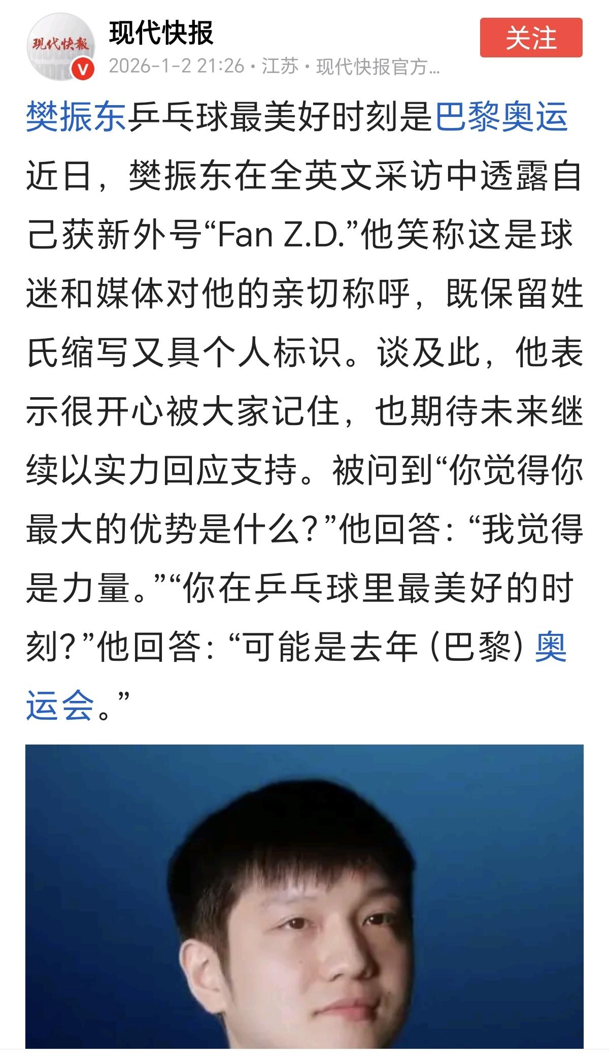很多网友都表示,自从到了这个小镇,东哥的脸上露出了久违的笑容。 他笑得好开心啊! 一看就是从内心里散发出的喜悦。 在这个新的团队,他感受到了队友的温暖和观众们的热情。 更重要的是,在那里,没有所谓的“饭圈”,让他可以聚焦球台,能专注于自己的热爱,让乒乓球这项运动更加纯粹。 东哥能走到今天,很不易,也是他值得拥有的幸福时光。 在新的一年里,祝福小胖越来越好! 也把这份祝福送给每位路过的网友。