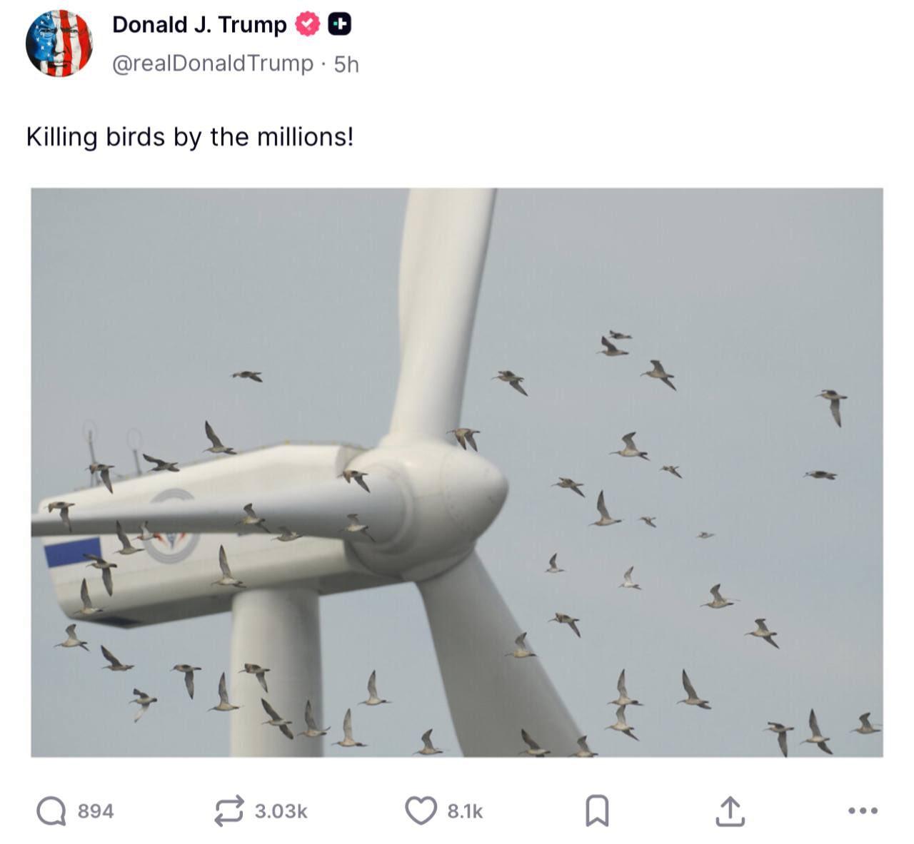 新闻快讯——特朗普晒出白头海雕尸体照片,抨击风力发电机致“数百万”鸟类死亡!