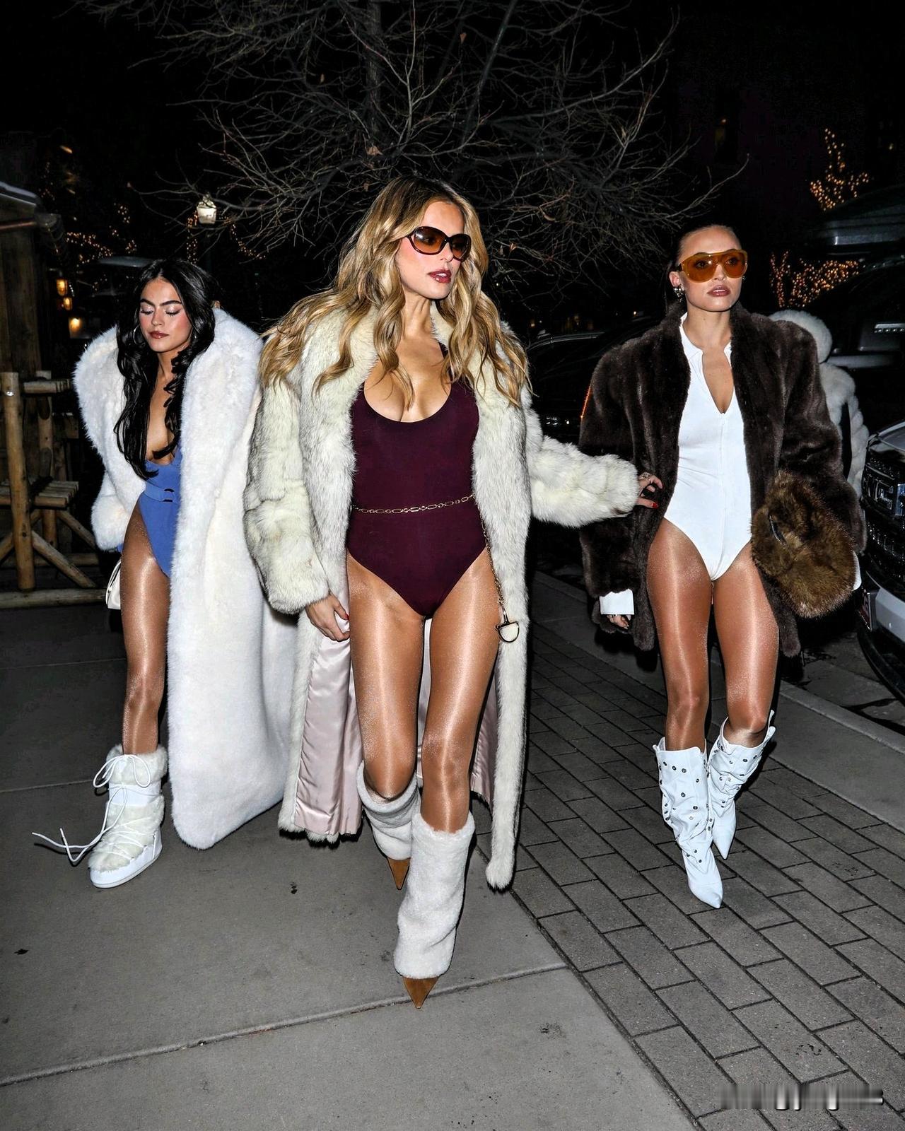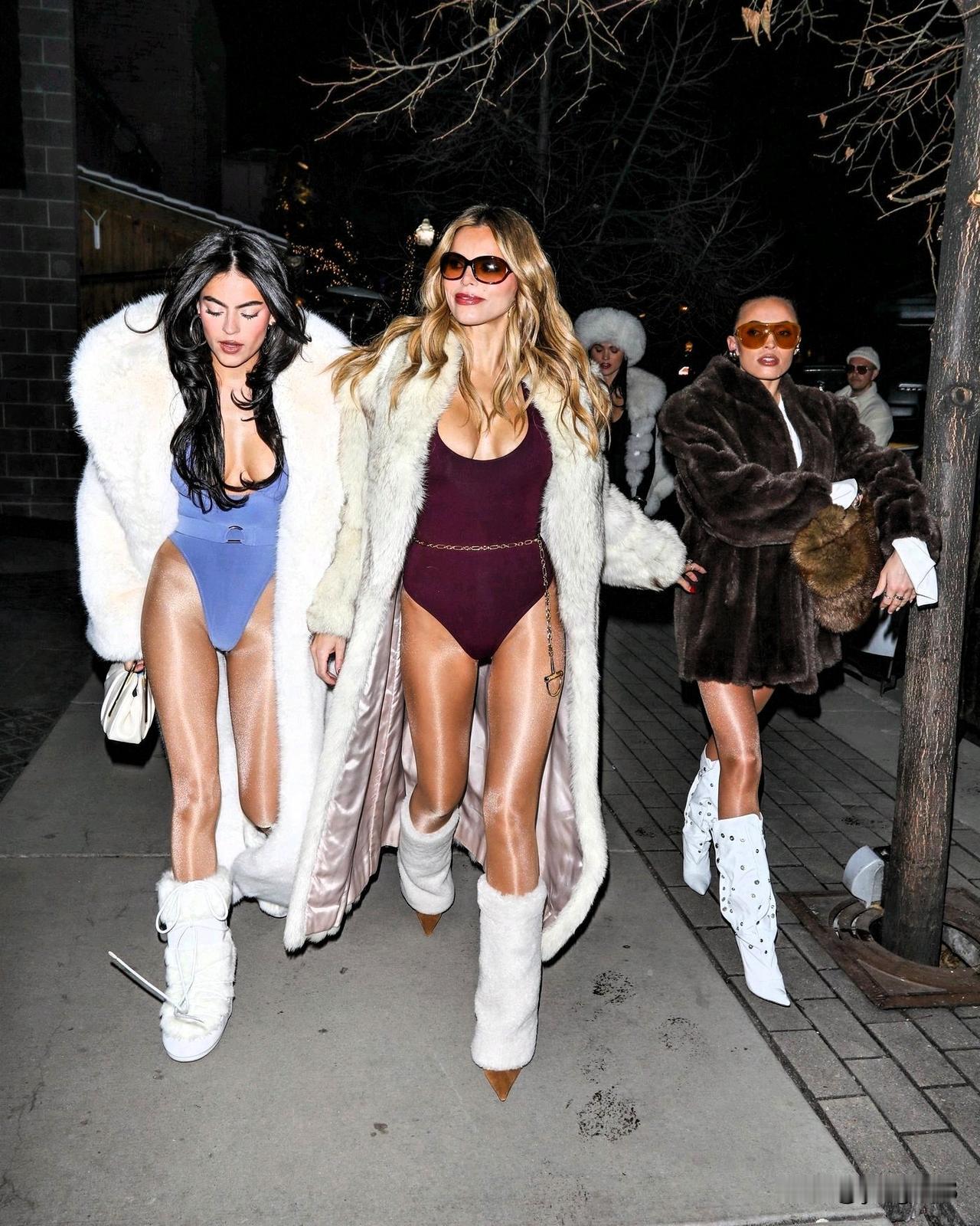 布鲁克斯·纳德和她的姐妹们重温了80年代的复古风情。 为了在科罗拉多州阿斯彭参加凯特·哈德森和凯德·哈德森的新年派对,这位泳装模特和她的姐妹玛丽·霍兰德、格蕾丝·安和莎拉·简不畏严寒,身着清凉的服装,完美契合了派对“80年代派对”的主题。 28岁的布鲁克斯选择了一件酒红色连体衣,搭配闪亮的金色链条腰带、超大渐变色太阳镜、象牙色皮草外套和毛茸茸的护腿套。欧美超模