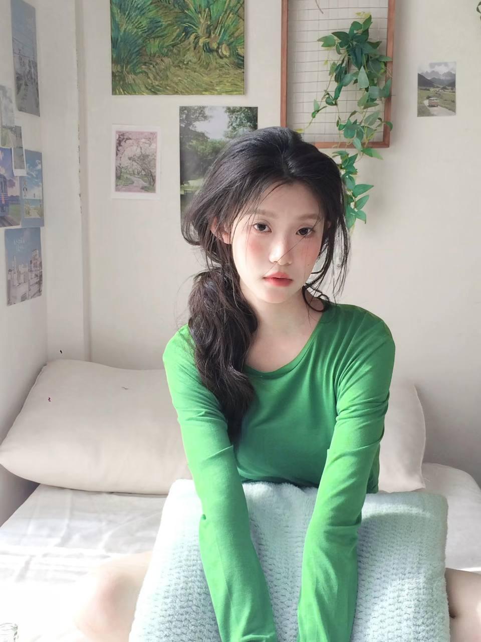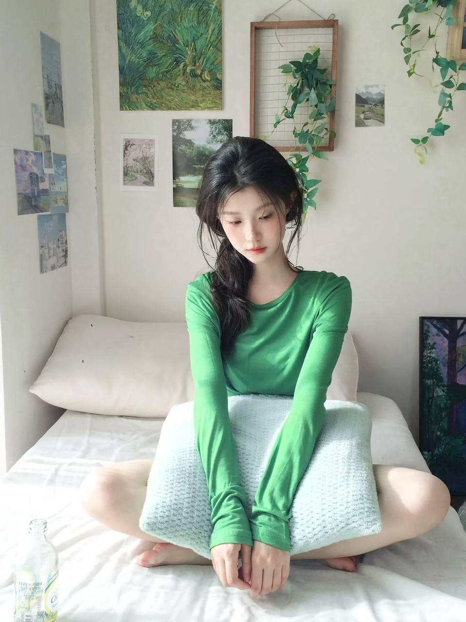 绿衣少女午休时刻绿裙佳人写真绿衣美人绿衣少女