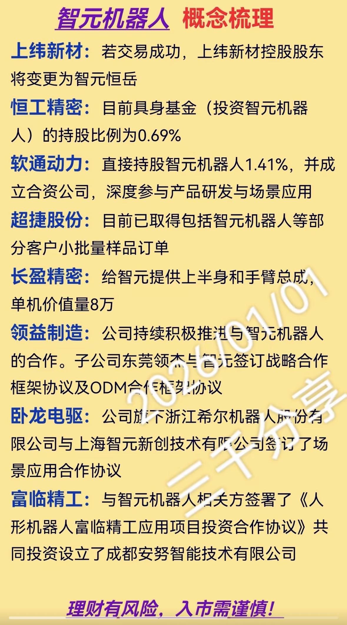 智元机器人概念梳理:上纬新材、恒工精密等公司深度参与 "智元机器人生态链崛起!禾川执行器、 鸣志电机、柯力传感等 核心部件合力推动人形机器人技术突破, 量产在即。"