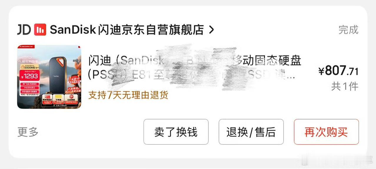 听说闪迪的股票涨了,东西也涨价了[奸笑] 我赶紧搜了一下,我前几个月买的硬盘, 居然真涨了接近500!! 头一次感觉赚到了[允悲][允悲]