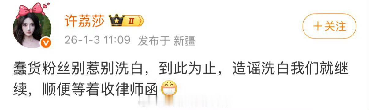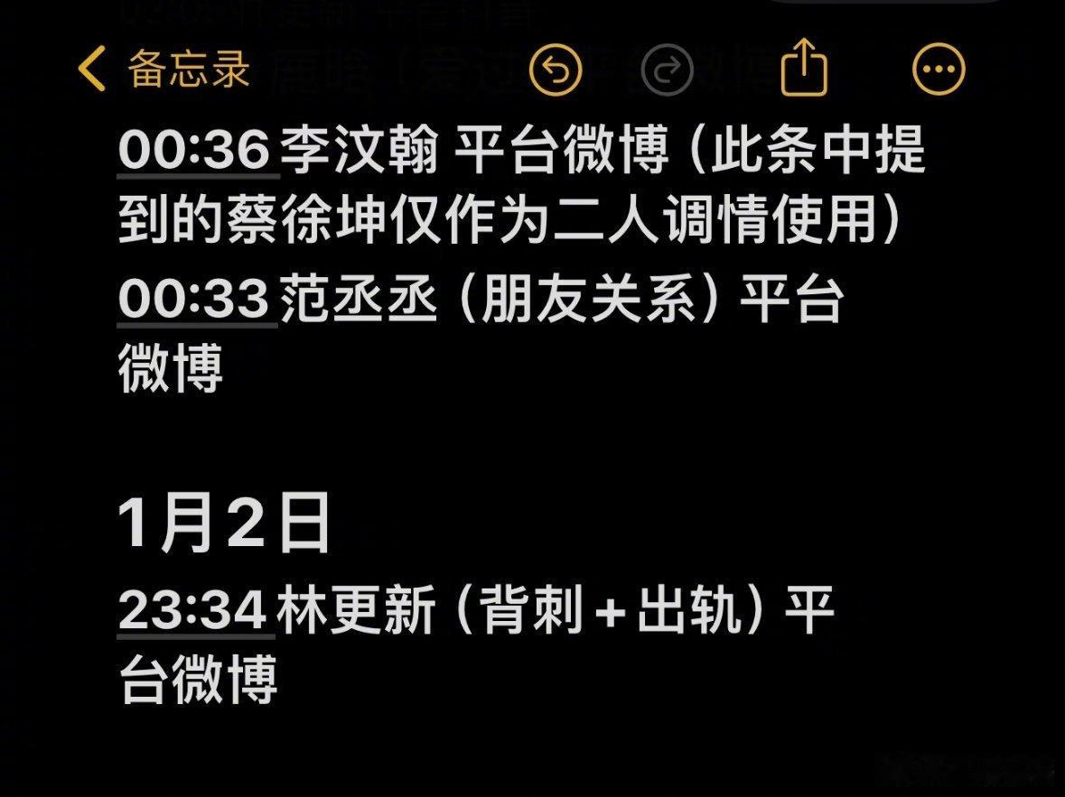 2026年开年大戏,嫂子大点兵!司晓迪瓜还没吃明白,许荔莎又来了! 截止到目前,某网红点名或牵扯到的男明星:鹿晗、檀健次、林更新、秦霄贤、李汶翰、黄明昊、李云迪、蔡徐坤、范丞丞、买超、周奇、张一山(共计12人)ps:大部分律师涵已经发了!待续🍉 更新