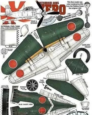 零式战斗机纸模型图纸 军舰 军事 图纸 模型制作 飞机模型 航模飞机