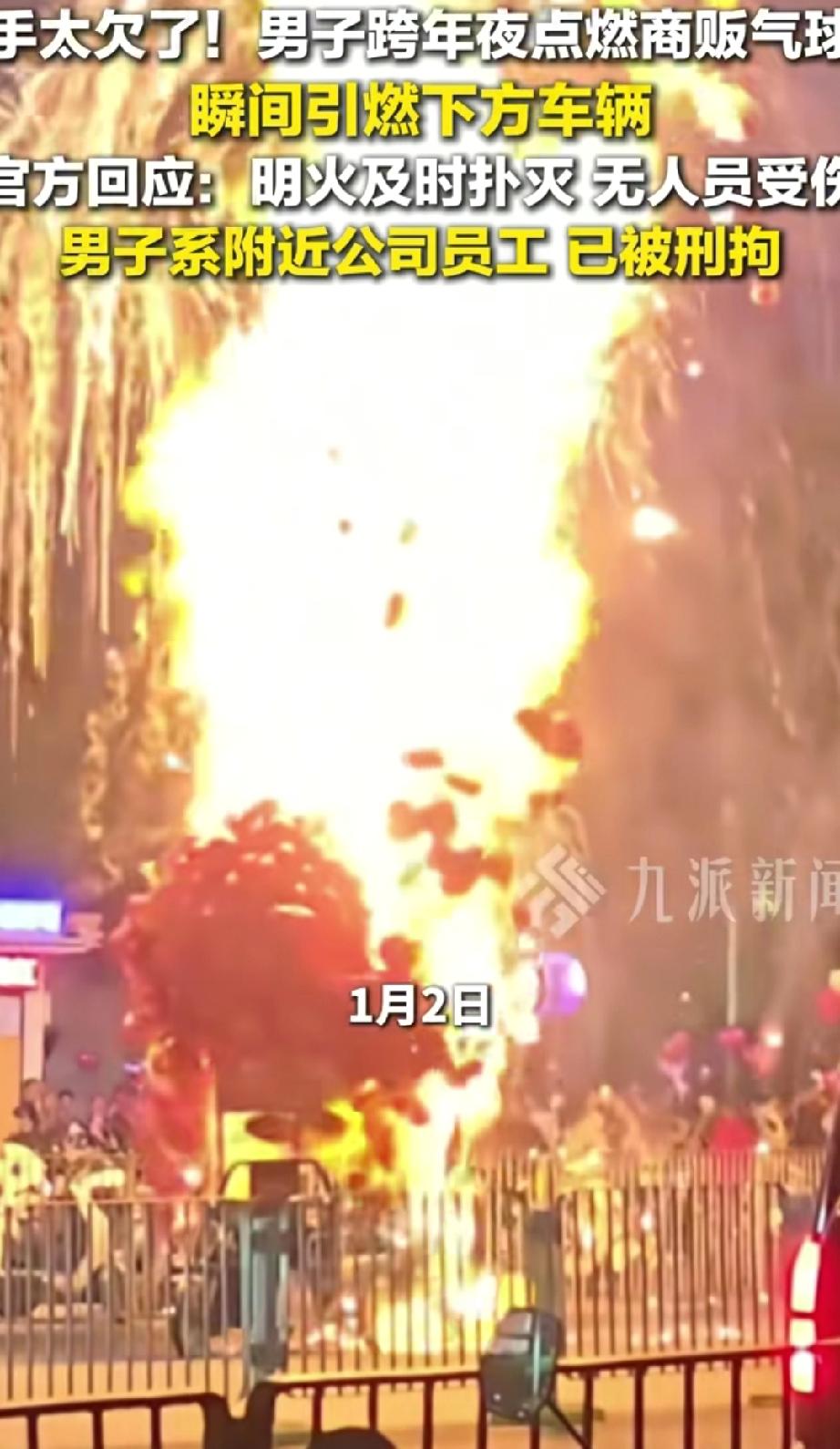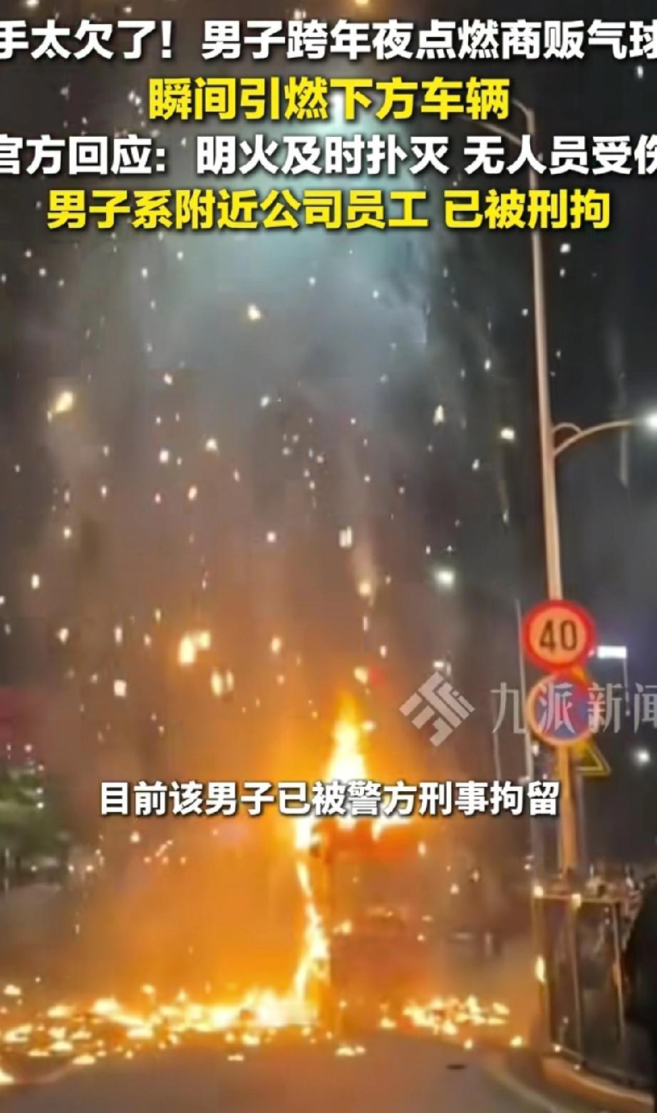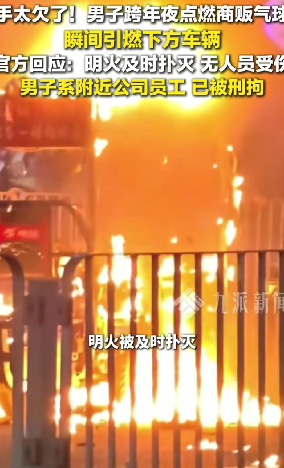 手太欠!广东深圳,跨年夜一位商家在路边卖气球,没想到,这时一名男子走过来,但他不是买气球,而是拿出打火机把气球点燃,好在无人受伤,而男子也因酒后滋事被刑拘 视频里可以看到,一个商贩正售卖着各种颜色的气球,准备迎接新年的顾客。 就在这时,一名男子(据说是附近公司的员工)走了过来。他做出了一个让所有人都没想到的举动:掏出打火机,直接凑向了那一大簇气球。要知道,这些气球很多都充的是易燃的氢气。 火苗一碰到气球,瞬间就发生了爆燃!一大串气球立刻变成一个火球,噼啪作响,火光冲天。卖气球的摊主当时就吓坏了,周围的市民也发出惊呼,纷纷躲避。好在现场的人反应很快,迅速把火扑灭了,这才没酿成更大的悲剧。 在人群密集的地方点燃易燃物,万一引燃其他东西或者伤到人怎么办?这根本不是恶作剧的尺度,这是在拿大家的生命财产安全当儿戏。就如网友说的“这根本不是开玩笑,这是犯罪!” “摊主招谁惹谁了?可能就指望跨年夜能多卖几个气球,赚点辛苦钱。结果无妄之灾从天而降,本钱和希望一把火全没了。这种对他人劳动成果的极端漠视,让人心寒。 一个成年人,必须为自己的疯狂行为负全责。警方以刑事犯罪拘留他,完全是咎由自取。这种行为不严惩,以后人人都这样“寻开心”,社会还有什么安全可言? 说到底,我们愤怒,是因为这种行为的背后,是极度的自私和对规则、对他人生命的蔑视。 我们每个人的安全感,就建立在大家都遵守基本规则的基础上。一个人为了一时快感,就轻易地击碎了这种安全,毁掉了别人的生计,这怎么能不让人气愤? 一场本应喜庆的跨年,以一场闹剧和一人被刑拘收场。一个气球不值多少钱,但这份“疯狂”的代价却极其沉重——他毁掉了小贩的夜晚,也毁掉了自己的自由。 法律和道德的底线,在任何时候、任何情绪下都绝不能触碰。快乐不能建立在别人的痛苦和社会的风险之上。新的一年,愿我们都能多一份对他人的尊重,对规则的敬畏,共同守护我们身边这份平凡但珍贵的安全与和谐。